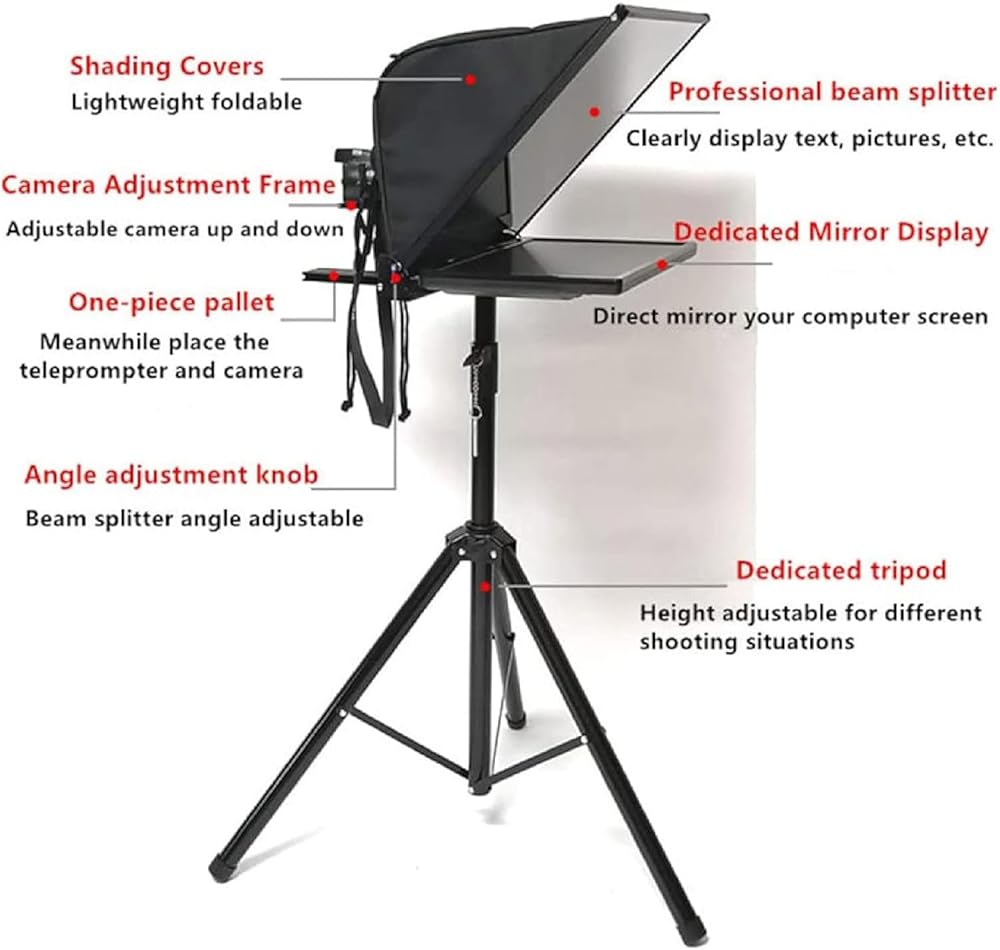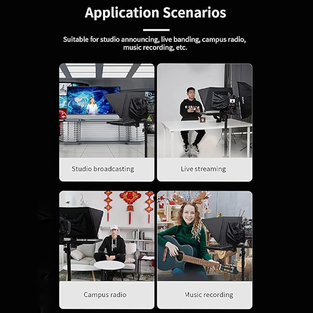 - Teleprompter can be used with remote control button and mouse, special remote control, foot pedal, page turning pen, etc. (Not included)