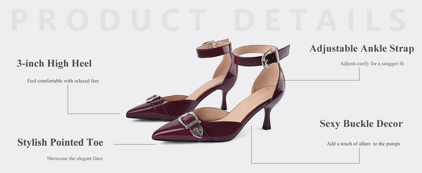 • تصميم عصري: اجعل الأمر بسيطًا مع حذاء بكعب مدبب، مصمم بنمط مفتوح من الجانب لإضفاء لمسة إضافية من الأناقة. يعتبر زوج أحذية D'Orsay ذات الحزام المشبك هو التصميم الأكثر كلاسيكية حتى الآن