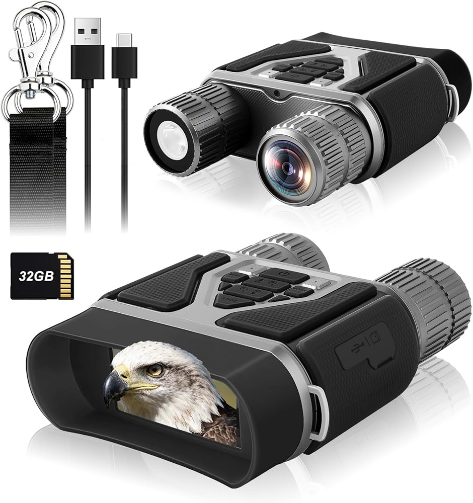 4K Ultra HD وتسجيل شامل: تصوير احترافي بسعة تخزين 32 جيجابايت تدعم نظارات الرؤية الليلية للبالغين فيديو 4K وصور 32 ميجابكسل، مقترنة بشاشة TFT مقاس 3.0 بوصة للحصول على تفاصيل واضحة. مناظير الرؤية الليلية للبالغين تقريب رقمي 16x يقفل الأهداف البعيدة. تتضمن بطاقة سعة 32 جيجابايت للتخزين الفوري؛ كابل من النوع C يتيح سهولة النقل إلى أجهزة الكمبيوتر.