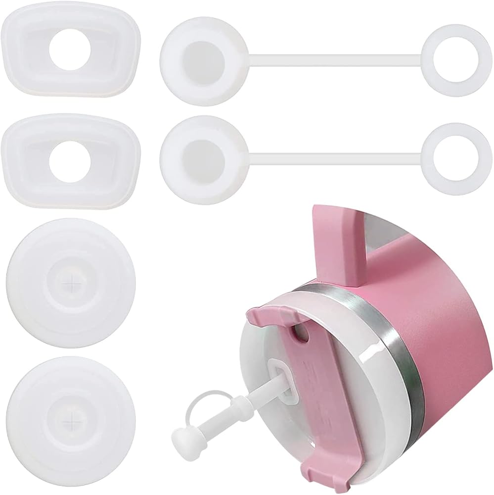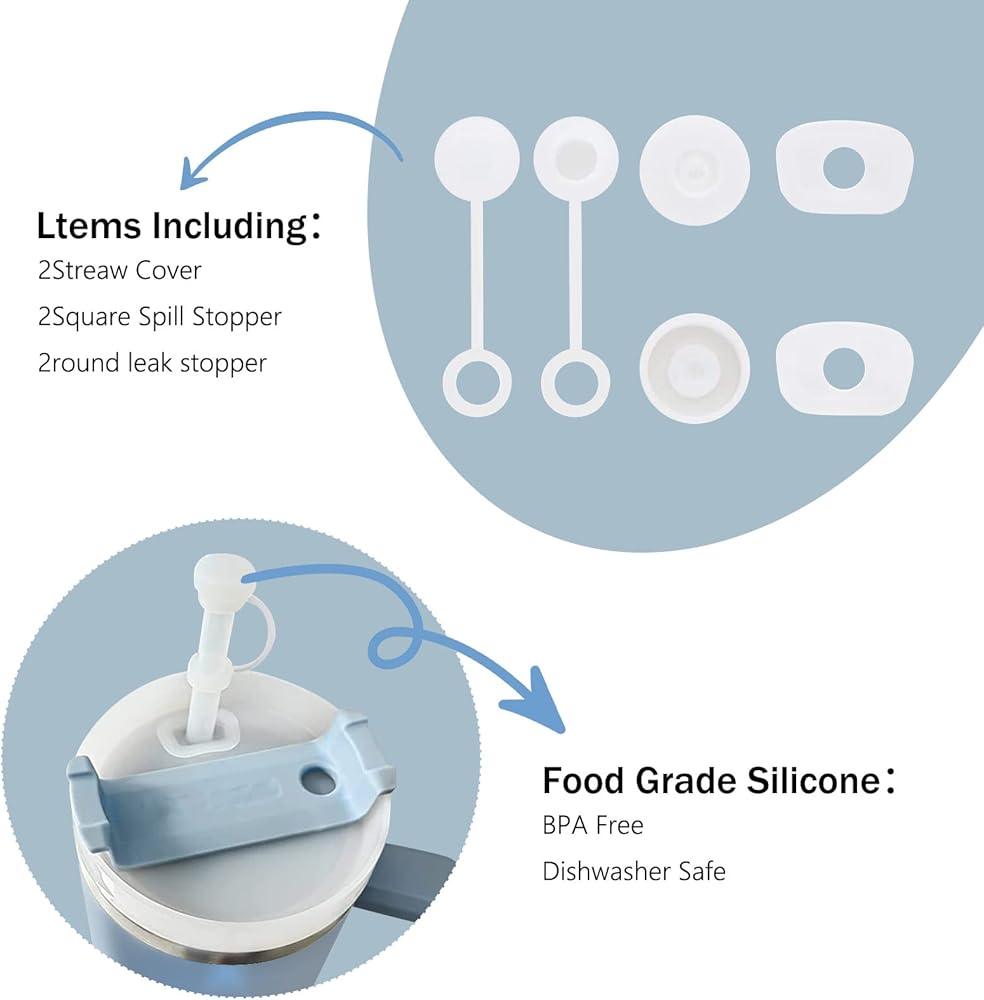مجموعة سدادات سيليكون مقاومة للانسكاب من 6 قطع، متوافقة مع كوب ستانلي 1.0/30 و40 اونصة مع مقبض، 2 غطاء بماصة و2 مربع و2 سدادة دائرية مانعة للتسرب من السيليكون لملحقات اكواب ستانلي