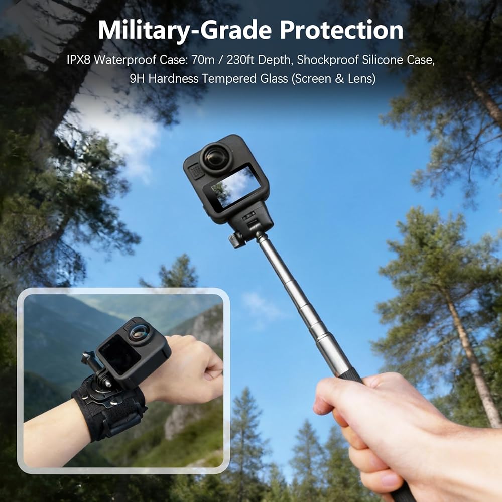 Magnetic Quick-Release & Full Protection: Includes magnetic holder for instant camera attachment/detachment, plus a waterproof housing to safeguard your Action camera in rain, snow, or underwater (up to 45m). Every piece is tested for impact resistance—engineered to endure the toughest conditions