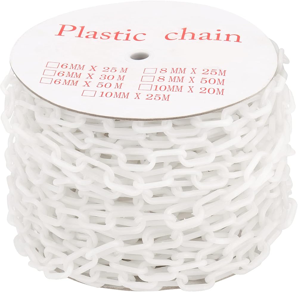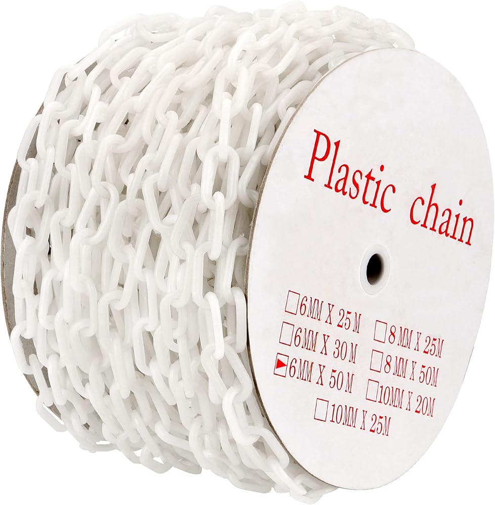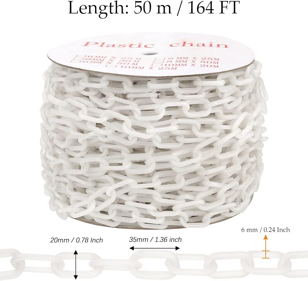 وصلات سلسلة بلاستيكية بيضاء بطول 164 قدم من MUKCHAP، سلسلة أمان بلاستيكية خفيفة الوزن، سلسلة حاجز بلاستيكي للتحكم في الحشود، خط الانتظار، الديكور، طول الرابط، العرض والسمك 1.36 × 0.78 × 0.24 بوصة