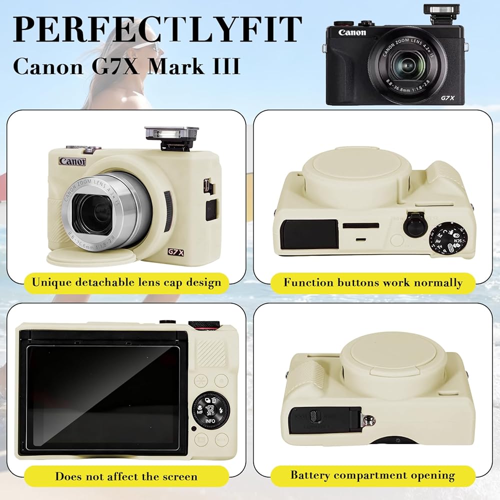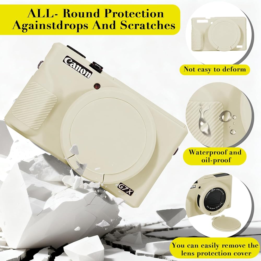 • حماية ممتازة: حافظة كاميرا CboZpfa لجهاز Canon Powershot G7 X Mark III/G7X 3 DSLR مصنوعة من مادة سيليكون ناعمة وقوية مع تصميم محسن للقبضة يوفر لمسة ناعمة ومريحة. قابلة للغسل، ومتينة، وخفيفة الوزن، ولا تضيف أي عبء على الكاميرا.