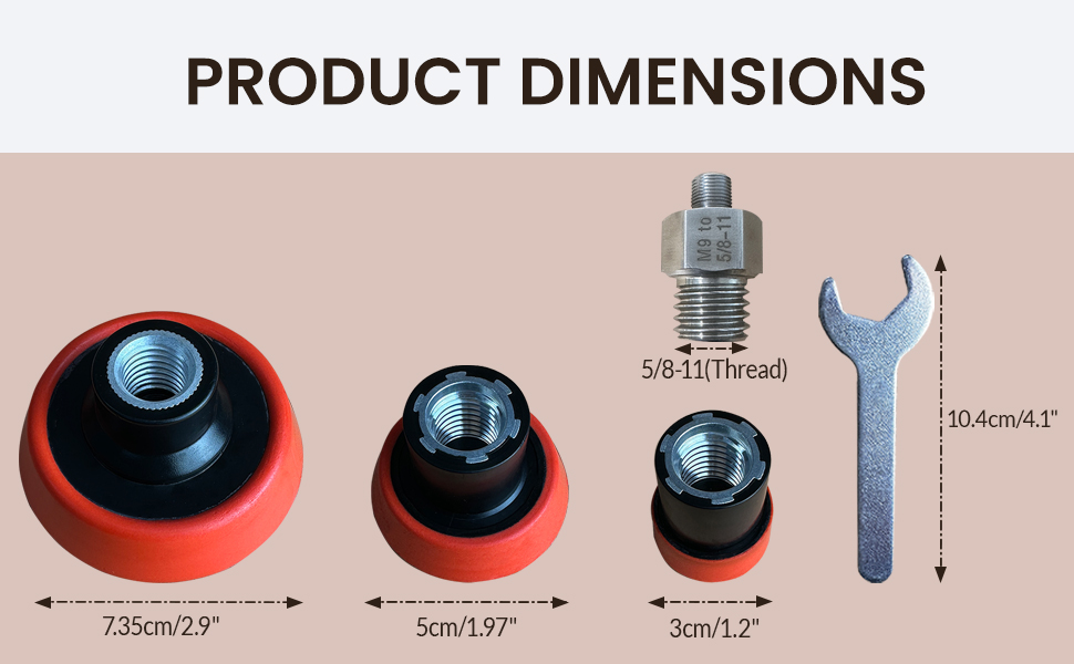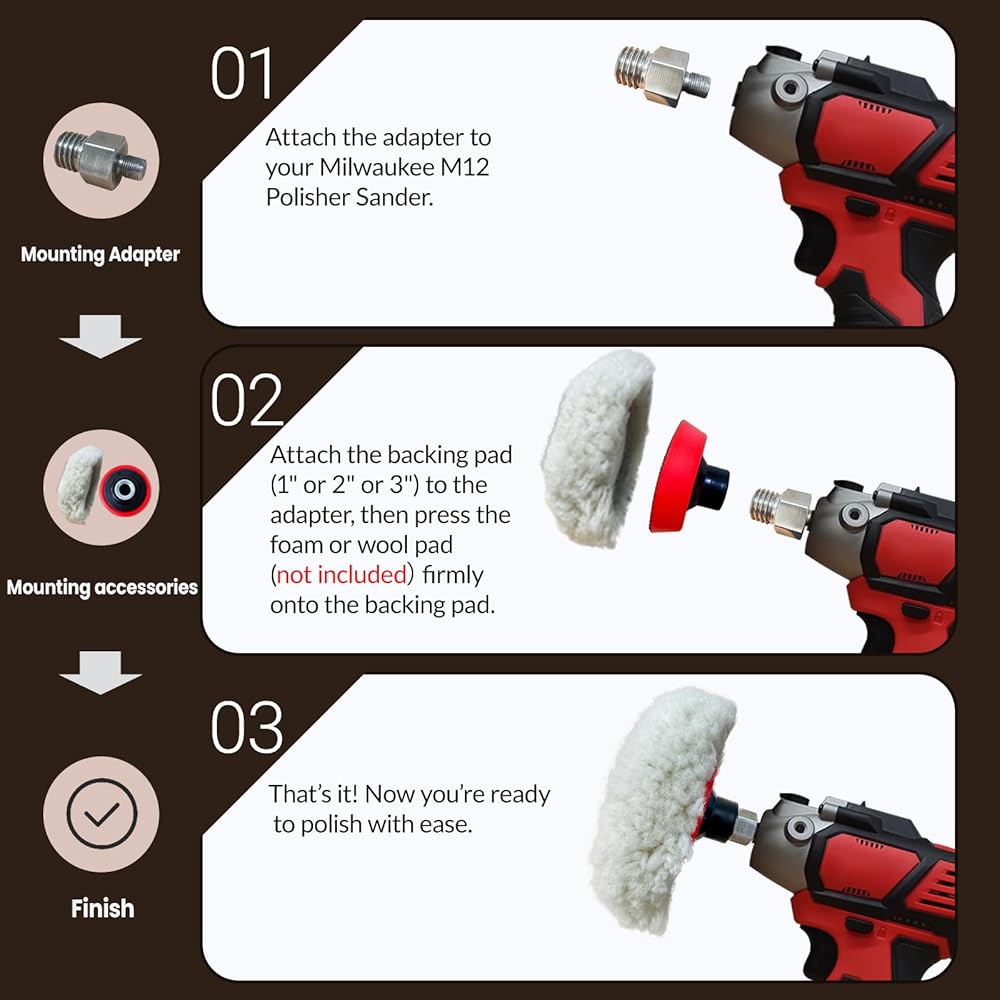 مجموعة تلميع التلميع لجهاز تلميع/صنفرة Milwaukee M12، تتضمن محول M9 إلى 5/8-11 ووسادة دعم 1 بوصة، 2 بوصة، 3 بوصة، لا تتضمن وسادات تلميع إسفنجية وصوف (5 قطع)