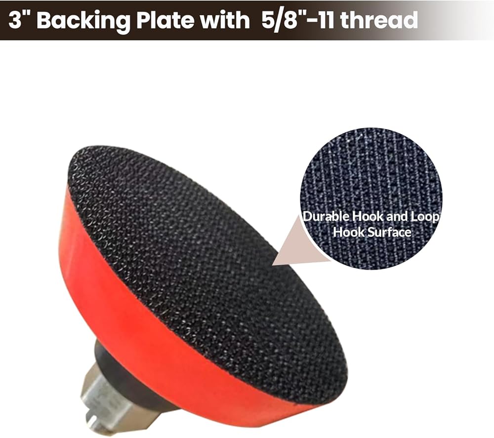 3 أحجام مختلفة من وسادات الدعم ذات الخطاف والحلقة (1 بوصة، 2 بوصة، 3 بوصة) مع حجم خيط أنثوي 5/8-11 يمكن استخدامها للصنفرة/التلميع ويجب استخدامها مع ورق الصنفرة المتدفق أو وسادات التلميع الإسفنجية أو كرات تلميع الصوف. إنها مناسبة لتلميع وتشميع أجسام السيارات، وإصلاح المصابيح الأمامية، والصنفرة الرطبة، والصنفرة، وإزالة الصدأ، وتلميع الرخام الاصطناعي، والأثاث، والمنتجات الخشبية.