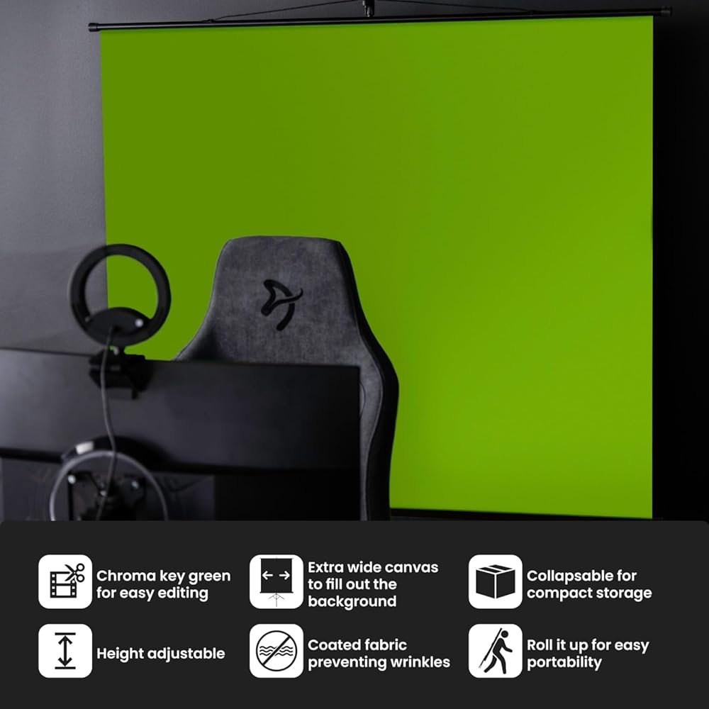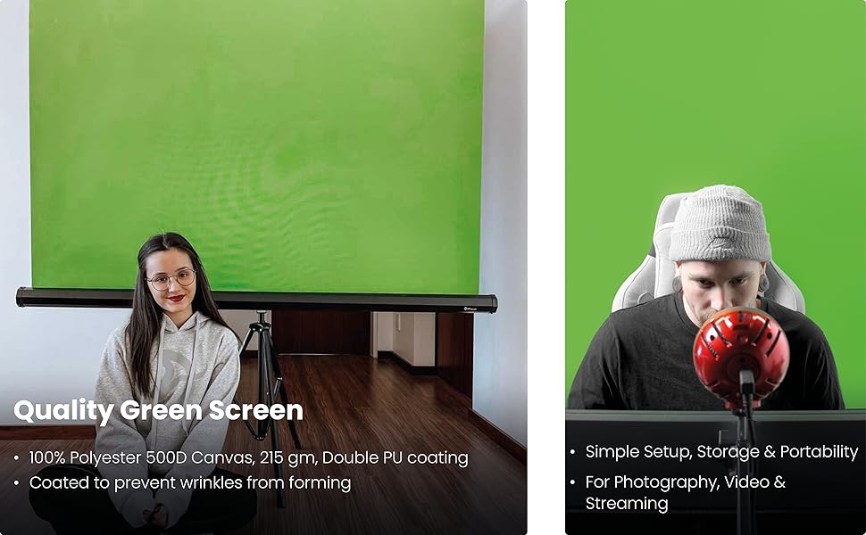 شاشة فائقة الاتساع: واحدة من أكبر الشاشات الخضراء المحمولة المتاحة، وتضمن الخلفية القابلة للاستخدام التي يبلغ حجمها 62 بوصة تقريبًا أقصى قدر من التغطية