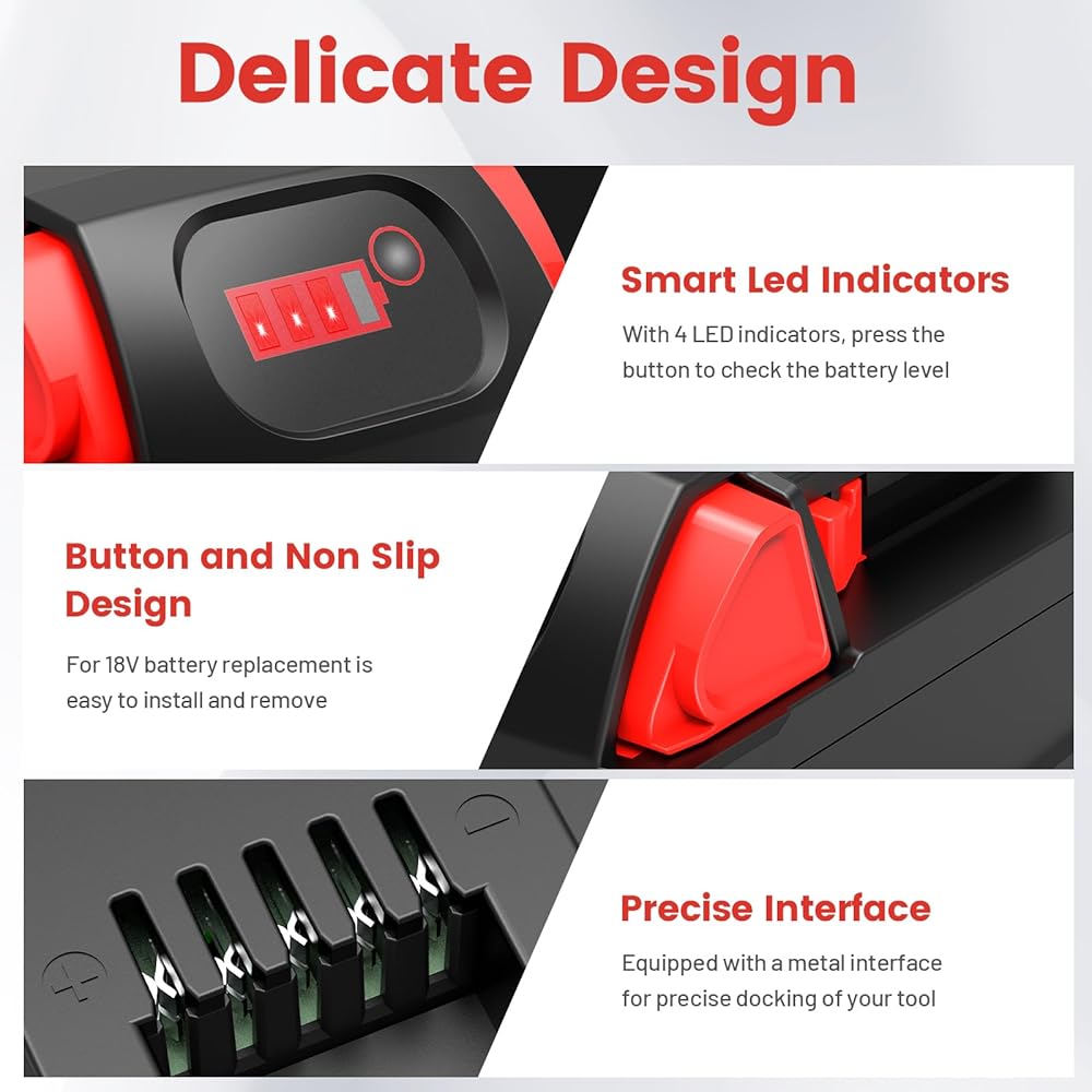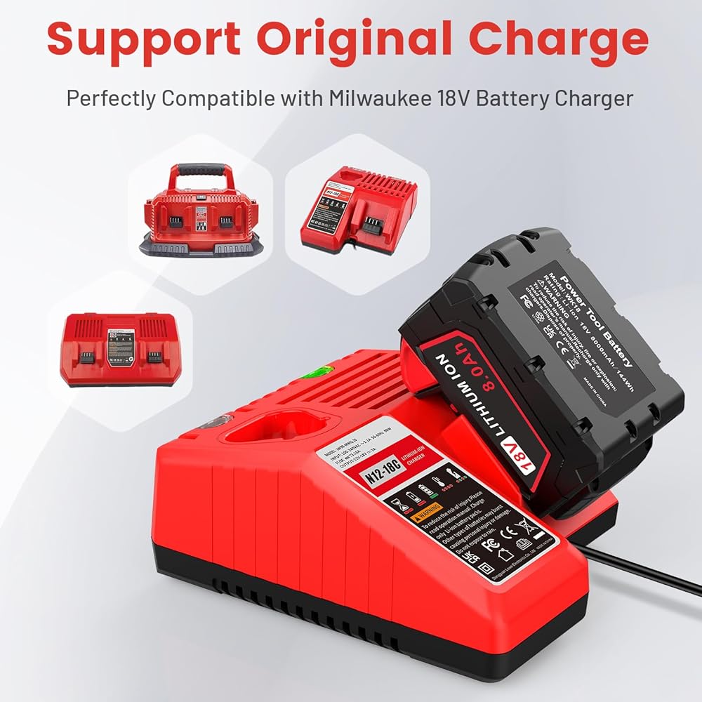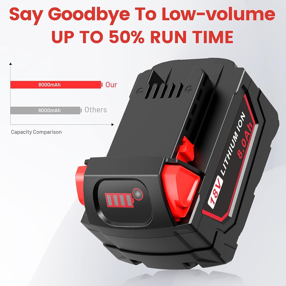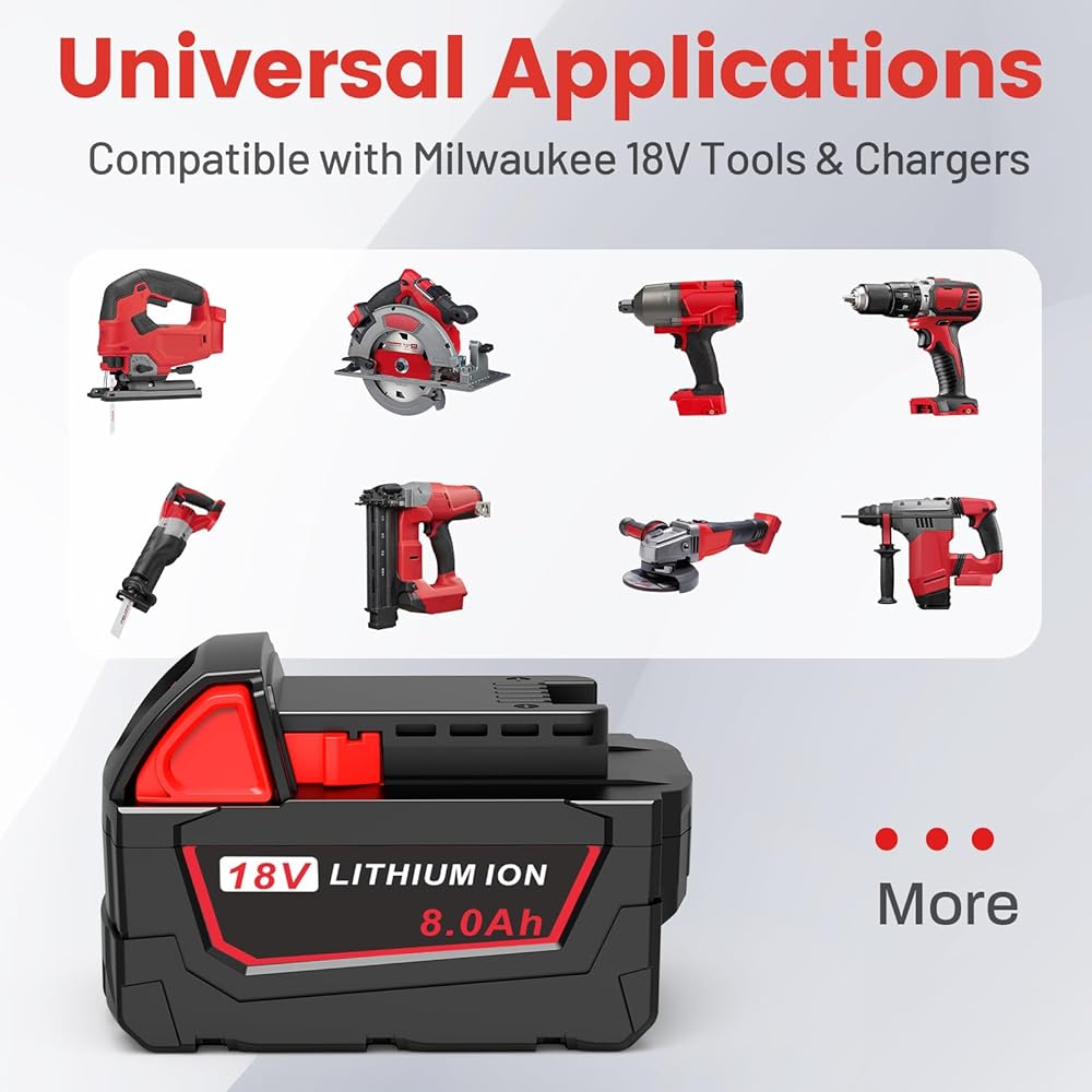 نظام السلامة: استبدال بطارية ميلووكي 18 فولت خلايا بطارية ليثيوم أيون ممتازة مدمجة توفر شحنًا سريعًا واستهلاكًا منخفضًا للطاقة، لا يوجد تأثير على الذاكرة، حماية ذكية ضد الأضرار المحتملة الناجمة عن الشحن الزائد، والتفريغ الزائد، والجهد الزائد، والتيار الزائد، والدائرة القصيرة