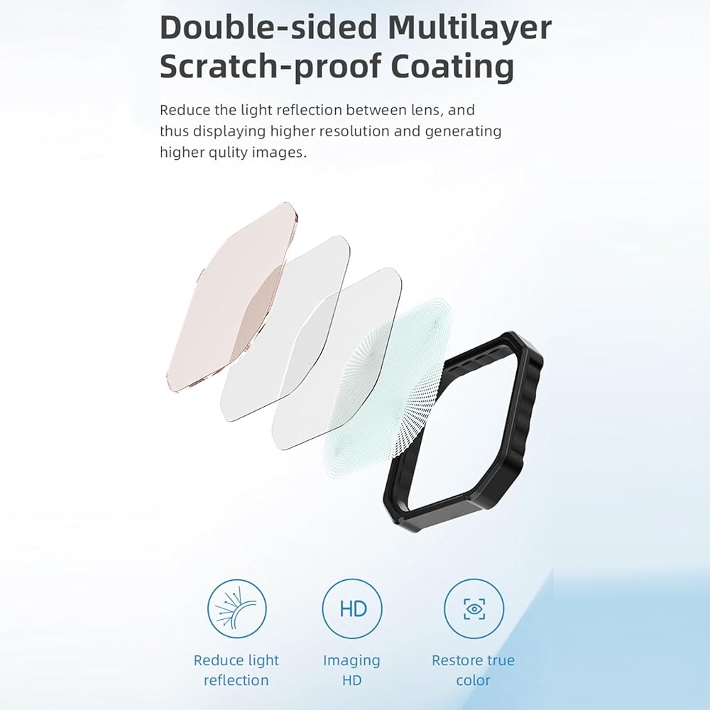 Enhanceds for footages with CPL filter, featuring 99% light transmission to reduce glares, boosters color saturation, and deliver outdoor visuals through its antireflective polarized lens.