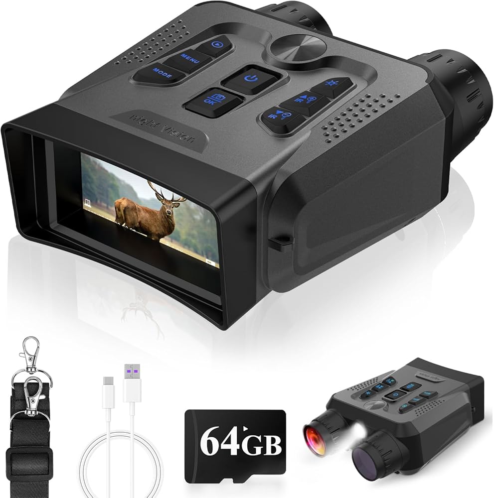 نظارات رؤية ليلية 4K - مناظير رؤية ليلية للبالغين، تكبير رقمي 10X، شاشة عالية الدقة 3 بوصات، نطاق عرض يصل إلى 1640 قدمًا، مع بطاقة TF سعة 64 جيجابايت لحفظ الصور ومقاطع الفيديو، وهدايا أمان للتخييم والمشي لمسافات طويلة للرجال