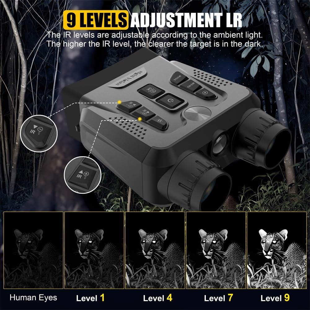【رؤية ليلية عالية التكبير】: باستخدام بصريات متعددة الطبقات بالكامل وأنابيب تكثيف الصورة، تم تجهيز مناظير الرؤية الليلية GOSALISU بتكبير رقمي 10x لرؤية واضحة على مسافات تصل إلى 1640 قدمًا/500 متر. يوفر مستوى الأشعة تحت الحمراء العالي صورًا أكثر سطوعًا في الليل، ومناظير GOSALISU بالأشعة تحت الحمراء مع إضاءة بالأشعة تحت الحمراء ذات 9 مستويات (850 نانومتر) لتوفير تجربة بصرية واضحة في الليل.