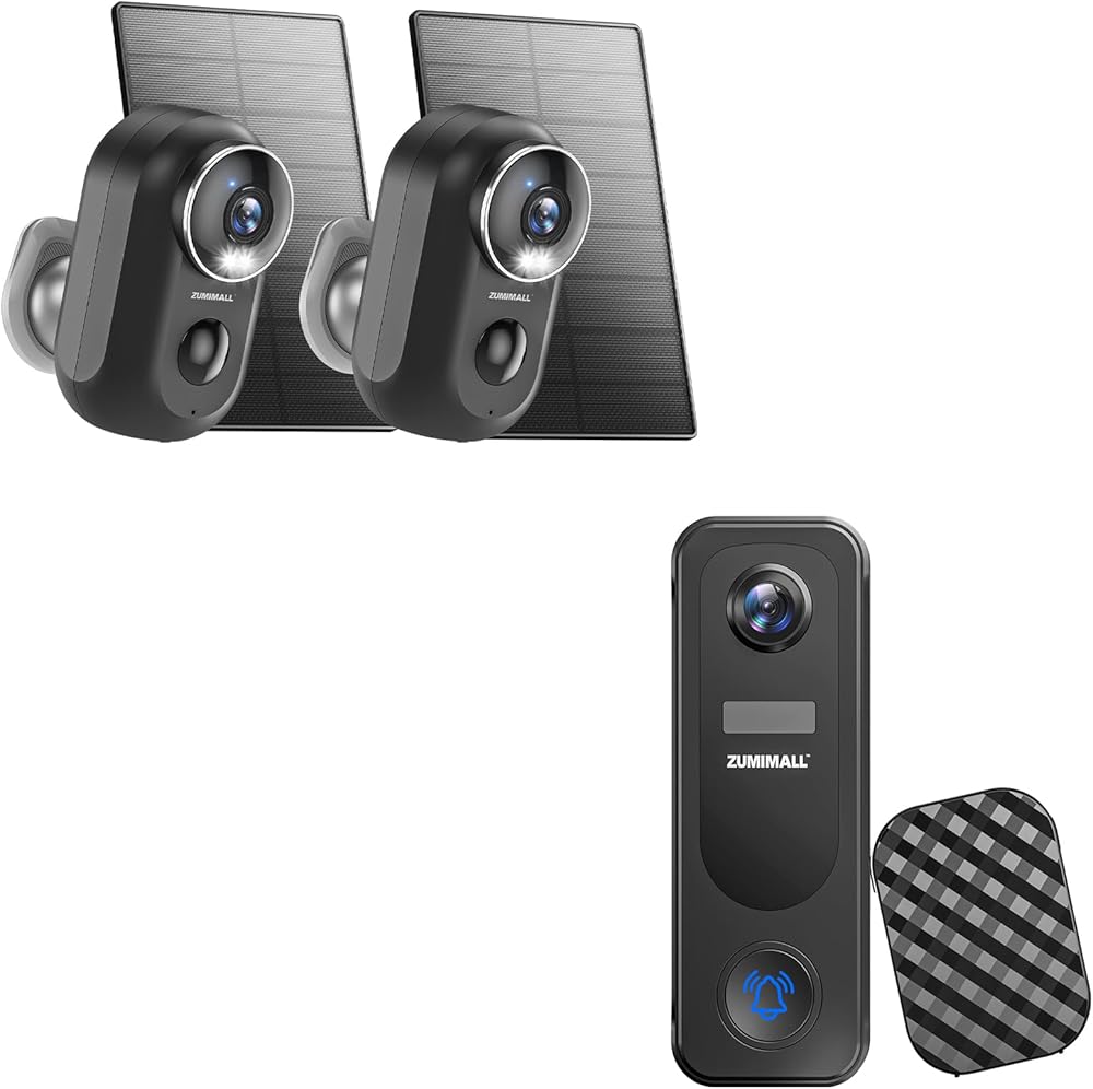 ZUMIMALL Solar Security Cameras Wireless Outdoor, 2Packs, Solar Camera Outdoor Wireless, 2.4G WiFi Battery Camera, 3MP Color Night Vision, Magnetic Mount, Siren,PIR/AI Analyse, IP66, Cloud, Alexa