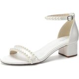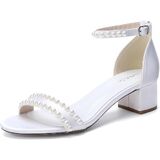 These elegant white bridal heels combine timeless sophistication with comfortable wearability for your special day. Featuring delicate pearl embellishments along the toe strap and ankle strap, these wedding shoes add a touch of refined glamour to any bridal ensemble. The block heel design provides stability and comfort, making them ideal for all-day wear during ceremonies and receptions. The low heel height offers the perfect balance between elegance and practicality, allowing you to move gracefully without sacrificing style. The ankle strap with adjustable buckle closure ensures a secure fit, while the open-toe design keeps your feet comfortable throughout the celebration. The classic white color makes these versatile dress shoes perfect not only for weddings but also for formal events, parties, and special occasions. The pearl detailing adds a luxurious finish that complements wedding gowns beautifully while remaining subtle enough to pair with various dress styles. Whether you're the bride, bridesmaid, or wedding guest, these block heel sandals deliver both fashion and function for memorable moments.