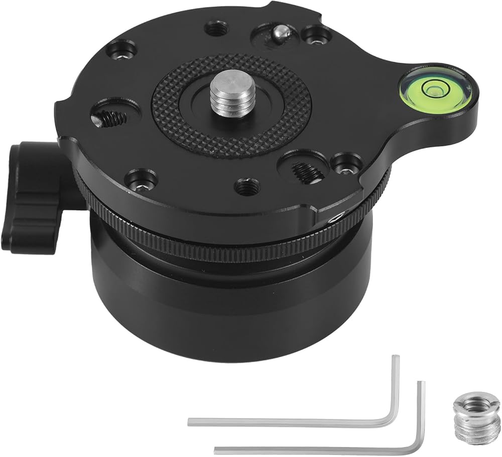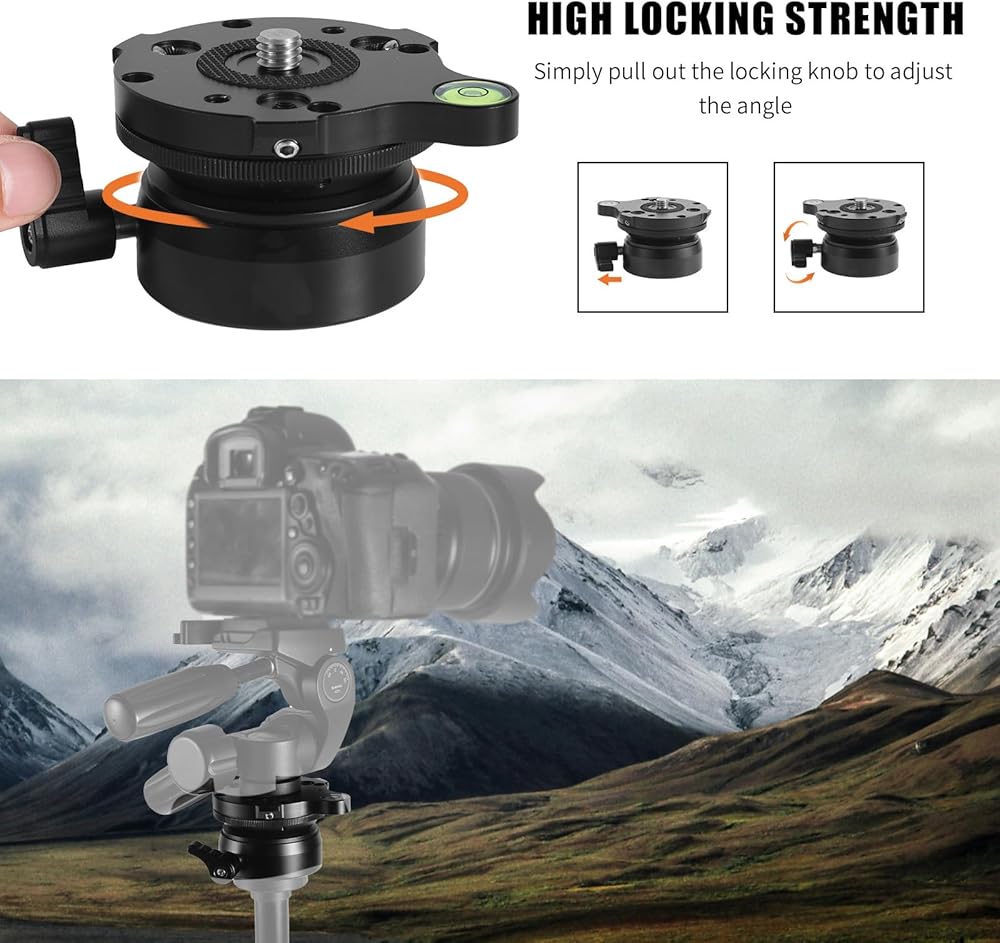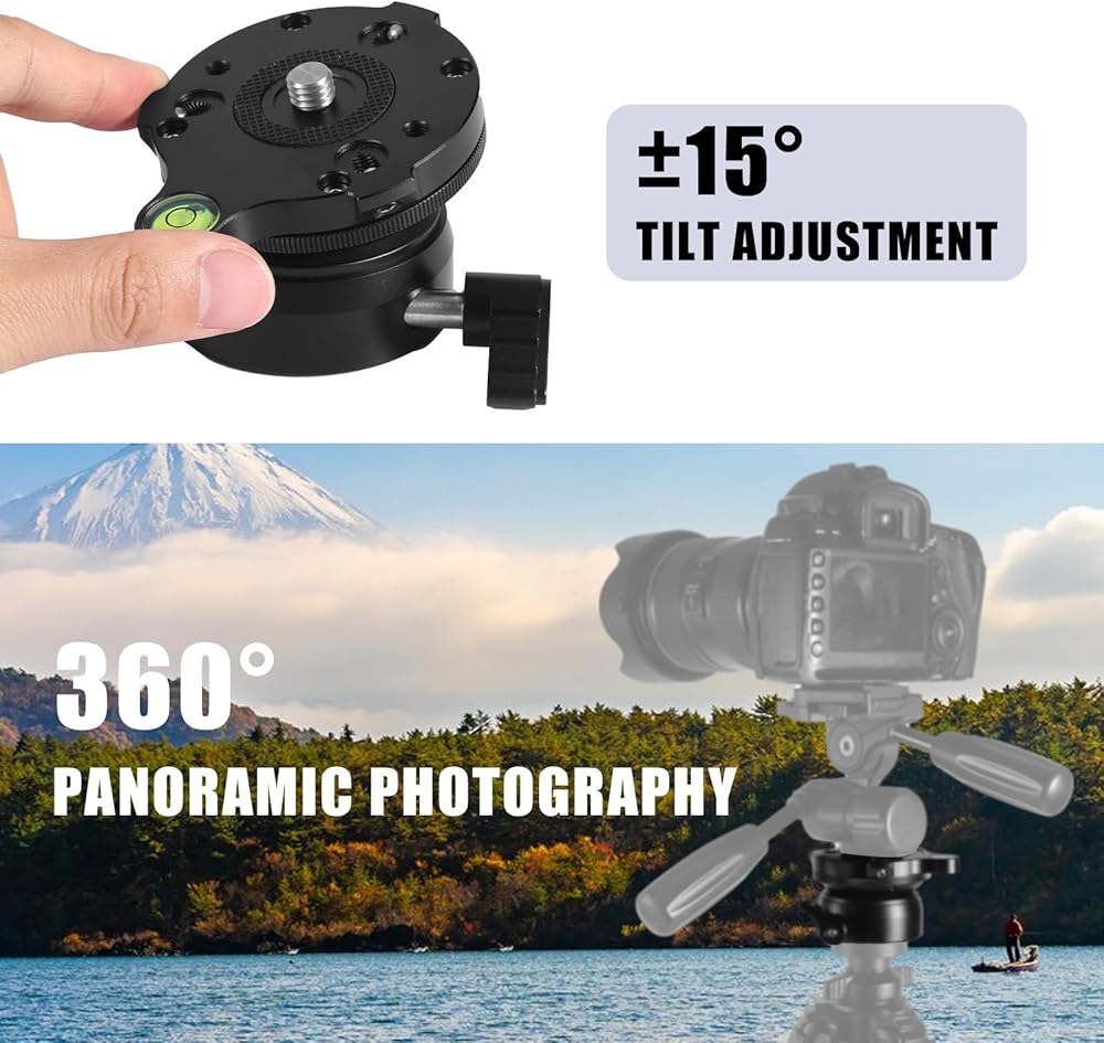 قاعدة تسوية ثلاثية القوائم بخيط 1/4 بوصة، لوحة رأس حامل ثلاثي القوائم من الألومنيوم ±15 درجة ضبط إمالة الكاميرا مع مستوى الفقاعات لكاميرات DSLR وكاميرات الفيديو والتلسكوبات الذكية