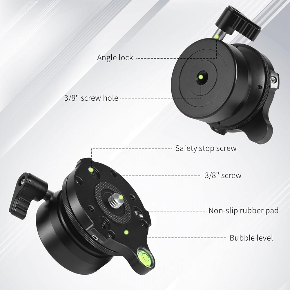 Convenient to Use: The bubble level enables faster, more intuitive leveling. Perfect for time-sensitive shoots. Non-slip rubber padding ensures stable positioning during extended use.