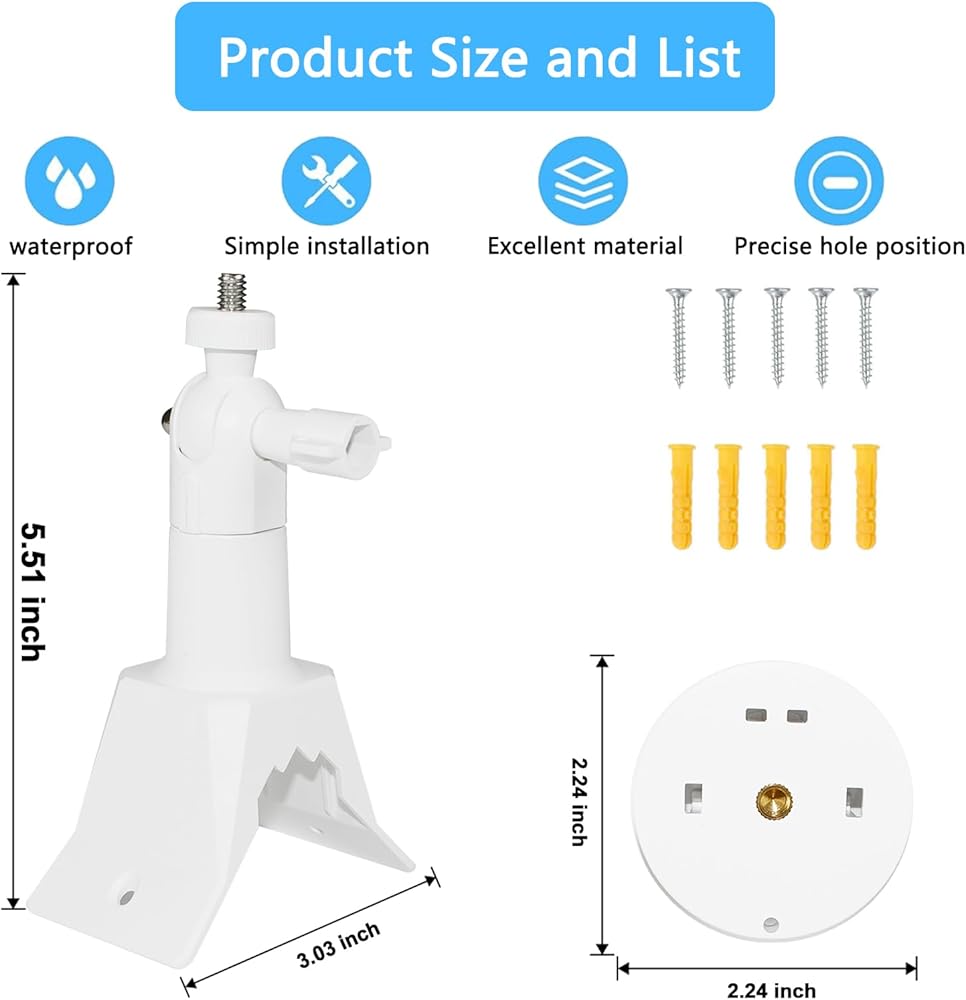 دعامة تثبيت على الحائط على الزوايا متوافقة مع الكاميرا الداخلية ذات الإمالة الدائرية، حامل تثبيت قابل للتعديل 360 درجة، مع برغي 1/4 سهل التركيب (أبيض، عبوة واحدة)