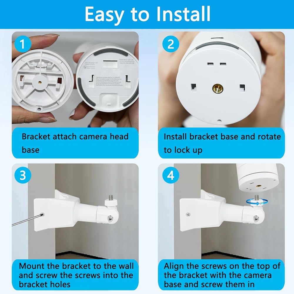 【سهل التركيب】يمكن تركيب حامل الحائط في الزاوية في غضون دقائق قليلة. لن يؤثر ذلك على وظائف الكاميرا، بل يجلب الراحة فقط