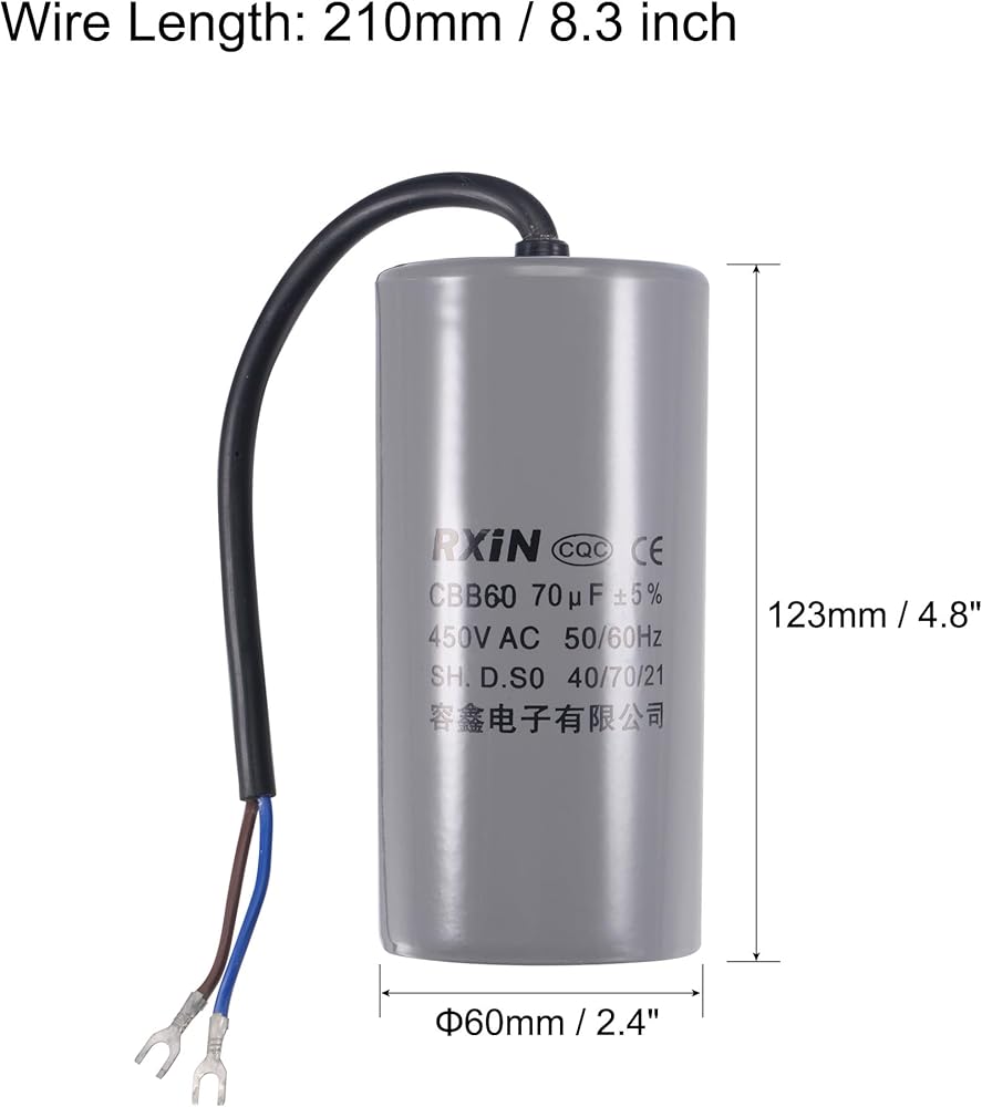The CBB60 capacitor is widely used for air compressors, water pumps, pressure washers, air conditioners, washing machines, motors, generators, HVAC, fans, drills, splitters, saws, grinders, etc.