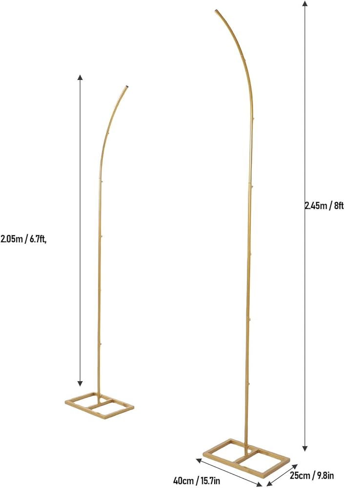 • [STABLE AND STURDY CONSTRUCTION] Crafted from high quality rustproof iron this gold arch backdrop offers superior load bearing capacity. The curved top design can support a variety of decorations without fear of bending or collapsing. Whether you choose to adorn it with fresh flowers artificial greenery or festive balloons this stand remains steadfast and secure.