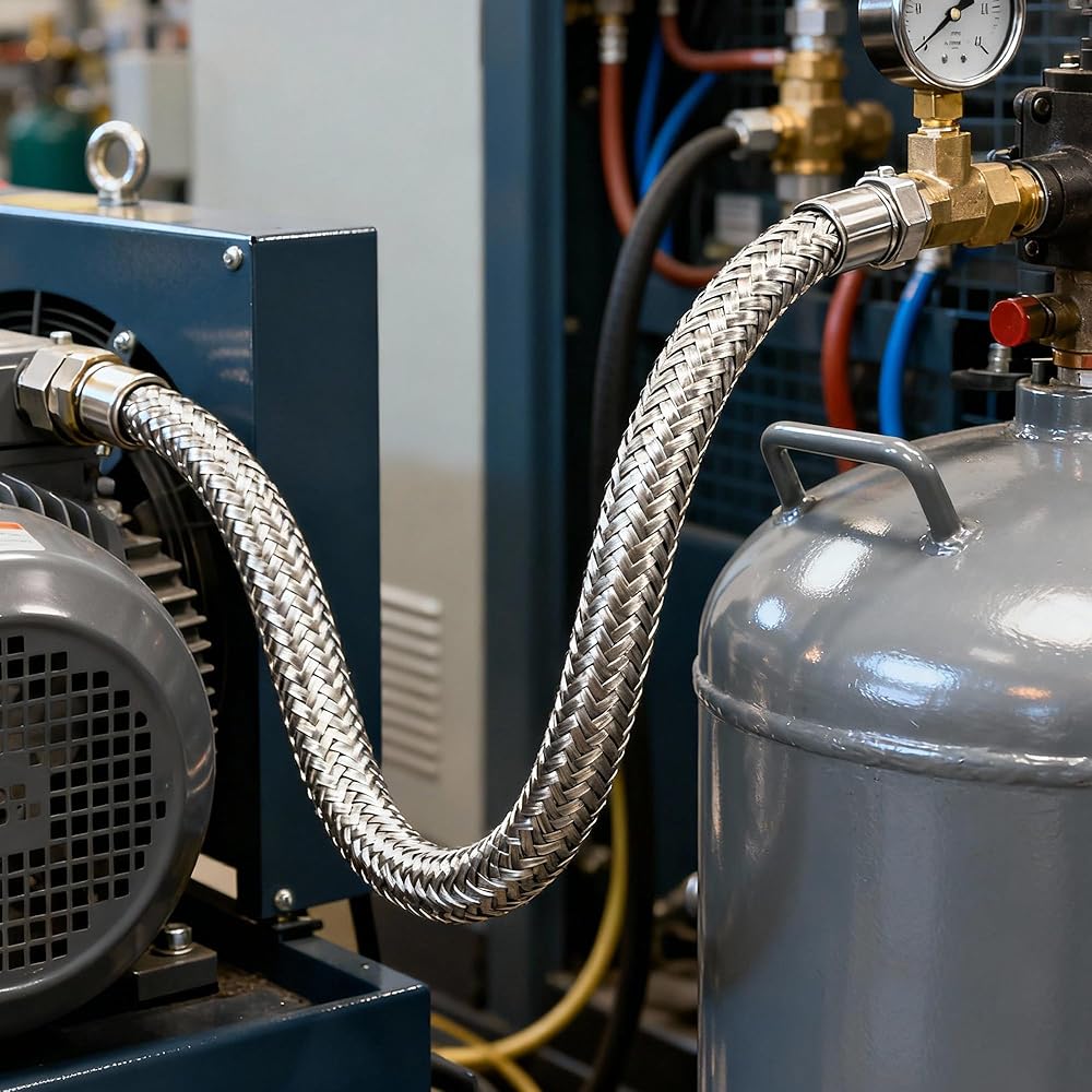 قلب مموج من الفولاذ المقاوم للصدأ (حلقي/موجة كاملة) يقلل من الاهتزاز/النمو الحراري مقابل خرطوم أملس؛ تدفق هواء ثابت لتفريغ الضاغط بنسبة 1/4/استخدام أنبوب الرأس