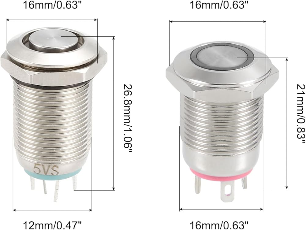 The metal push button switch can be used for Power Button Switch, Led Switch, DIY projects or any circuit controls. With IP67 Waterproof, can be used in wet or dusty environment.