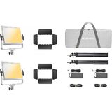 The Godox Litemons LP600Bi Bi-Color LED Light Panel 2-Light Kit is built for content creators, vloggers, and videographers who need a compact yet powerful lighting solution with reliable color accuracy. Each 60W panel delivers up to 2470 lux at 3.3' (5600K), producing soft, controlled light ideal for interviews, product videos, livestreams, and small studio setups. With an adjustable bi-color range of 2800–6500K, the LP600Bi panels transition easily between warm tungsten and clean daylight tones. High CRI and TLCI ratings of 96 ensure accurate color rendering and flattering skin tones, minimizing post-production correction. Brightness is smoothly adjustable from 0–100% for precise control across different shooting environments. Designed for flexibility, each light can be powered via the included AC adapters or optional NP-F batteries for mobile, cable-free operation. Settings can be adjusted directly on the rear display or remotely using the Godox Light app via Bluetooth from up to 49.2', making multi-light coordination simple and efficient. The lightweight 10 x 8" panels include detachable 4-leaf barndoors for spill control, 11 built-in lighting effects for creative scenes, and 360° adjustable mounting brackets. With two light stands and a carry case included, the LP600Bi 2-Light Kit is an easy-to-transport, ready-to-use lighting setup for both studio and on-location shoots.