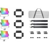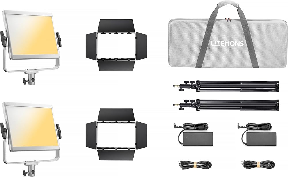The Godox Litemons LP1200Bi Bi-Color LED Light Panel 2-Light Kit delivers a powerful yet soft lighting solution designed for photographers, videographers, and content creators who need flexibility and consistent performance. As the most powerful fixtures in the LP series, these 120W bi-color panels provide professional illumination in a slim, lightweight form factor suitable for both studio and on-location use. Each LP1200Bi panel features adjustable bi-color control from 2800K to 6500K, allowing seamless transitions between warm and cool lighting environments. With CRI and TLCI ratings of 96, the panels ensure accurate color reproduction and flattering skin tones for interviews, livestreams, and creative productions. Brightness is fully adjustable from 0 to 100%, and 11 built-in lighting effects including flash, lightning, cloudy, broken bulb, TV, candle, fire, fireworks, explosion, welding, and SOS add creative realism to your scenes. Control is available directly on each fixture using onboard controls and a rear display, or wirelessly through the Godox Light app via Bluetooth from up to 49.2 feet away. Power options include AC operation using the included power adapters and cords, or optional V-mount batteries for portable shooting. Detachable four-leaf barndoors provide precise control over beam spread, while the integrated 360° mounting bracket allows flexible positioning on the included light stands. Lightweight at just 4 lb per panel and measuring approximately 16.6 x 14.1 x 1.8", the LP1200Bi fits easily into any lighting setup. A carry case is included for convenient storage and transport, making this 2-light kit a complete, travel-ready lighting solution for professional content creation.