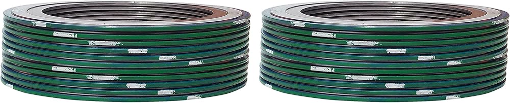 حشية جرح حلزونية من الفولاذ المقاوم للصدأ 9000IR3316PTFE900X24 316L مع حلقة داخلية 316SS وحشو PTFE لأنابيب 3 بوصات، فئة الضغط 900#، شريط أخضر مع شريط أبيض (عبوة من 24 قطعة)