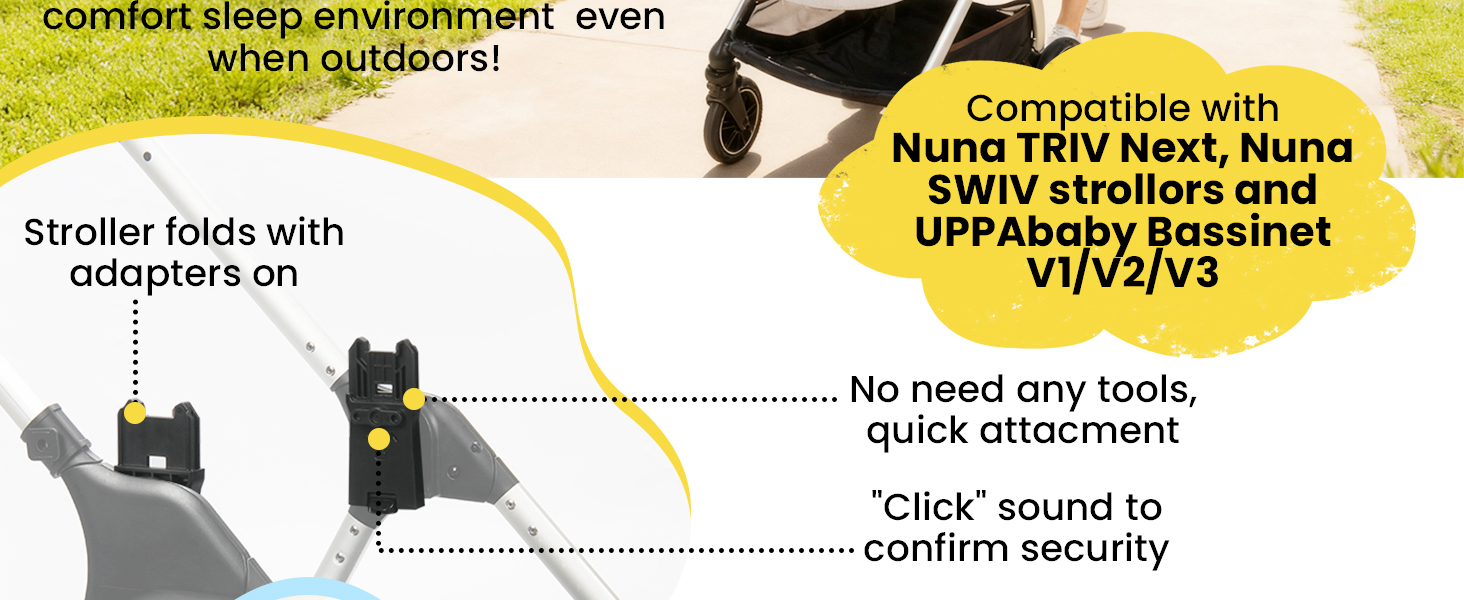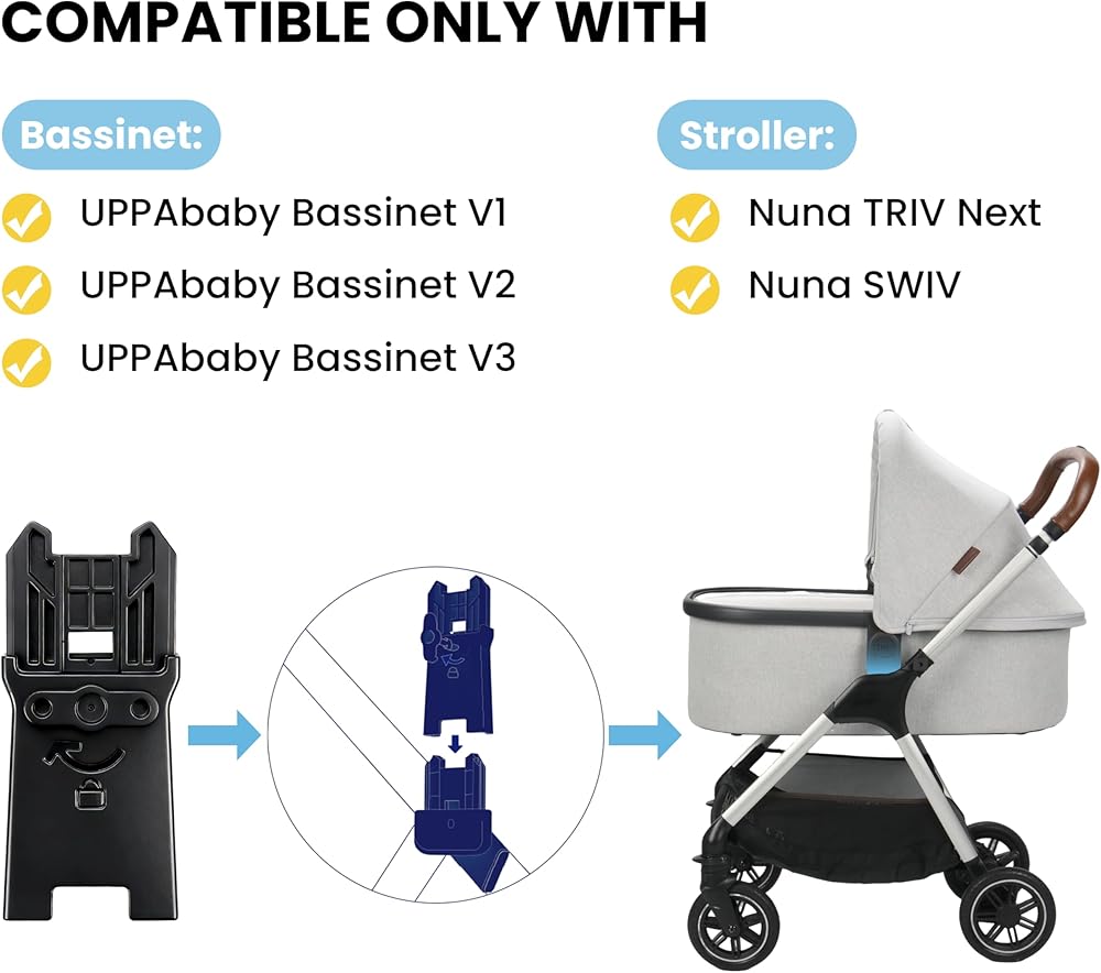 😊سهولة التركيب: يسمح التصميم خفيف الوزن وعملية التثبيت المباشرة بالإعداد السريع والإزالة لسرير UPPAbaby الخاص بك من عربة الأطفال Nuna TRIV Next/SWIV. لا يتداخل الموصل مع قدرة عربة الأطفال الخاصة بك على الوقوف بشكل مستقل أو طيها بشكل مضغوط.