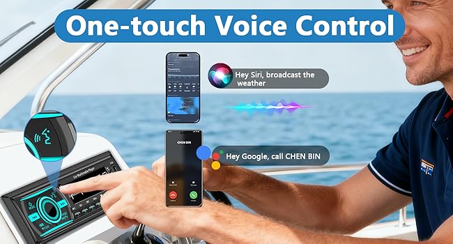 • بلوتوث ومكبر صوت مدمج: مزود بتقنية بلوتوث مستقرة، يتيح لك هذا الراديو إجراء مكالمات بدون استخدام اليدين أثناء توجيه القارب. يوفر مكبر الصوت المدمج صوتًا واضحًا حتى مع وجود الرياح، ويمكنك تشغيل الموسيقى/الملفات الصوتية من هاتفك الذكي. بالإضافة إلى أن جهاز التحكم عن بعد المتضمن يتيح لك ضبط مستوى الصوت أو تبديل الأغاني من قمرة القيادة أو منطقة الجلوس.