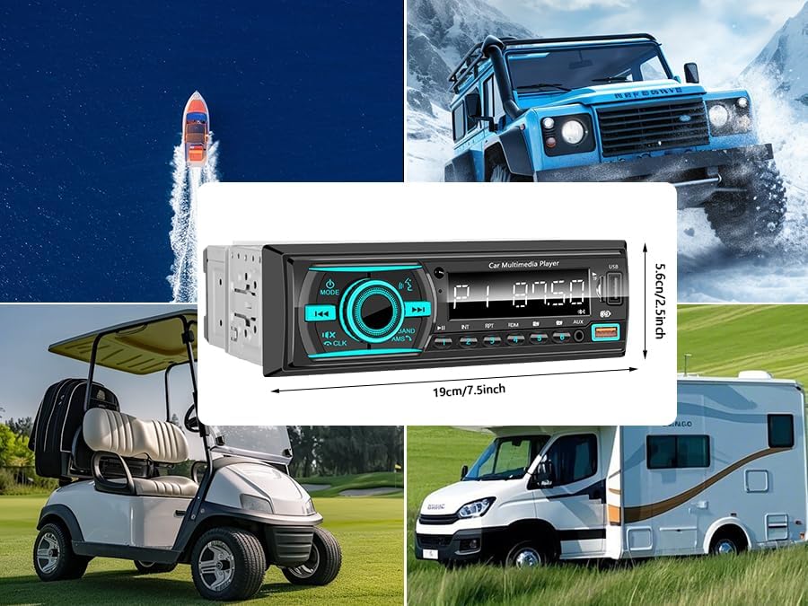 • الأحجام المتوافقة: بأبعاد 7.4 × 4.48 بوصة، يناسب هذا الراديو معظم فتحات وحدة التحكم بالقوارب القياسية. ولن تشغل مساحة كبيرة على لوحة القيادة، مما يترك مساحة لأنظمة الملاحة أو نظام تحديد المواقع العالمي (GPS). كما يعمل التصميم المدمج على تبسيط عملية التثبيت، ولا يلزم إجراء تعديلات معقدة على وحدة التحكم.
