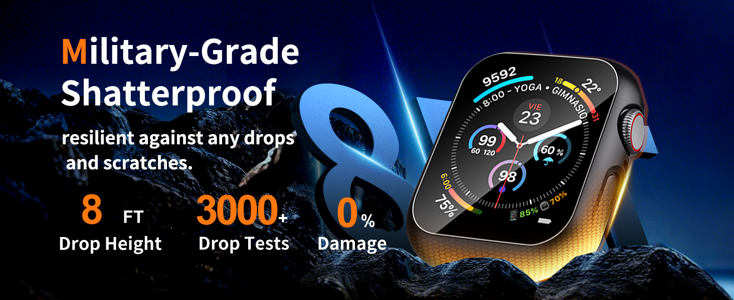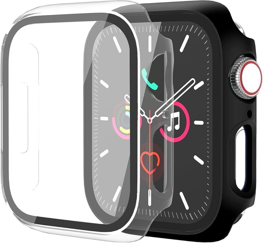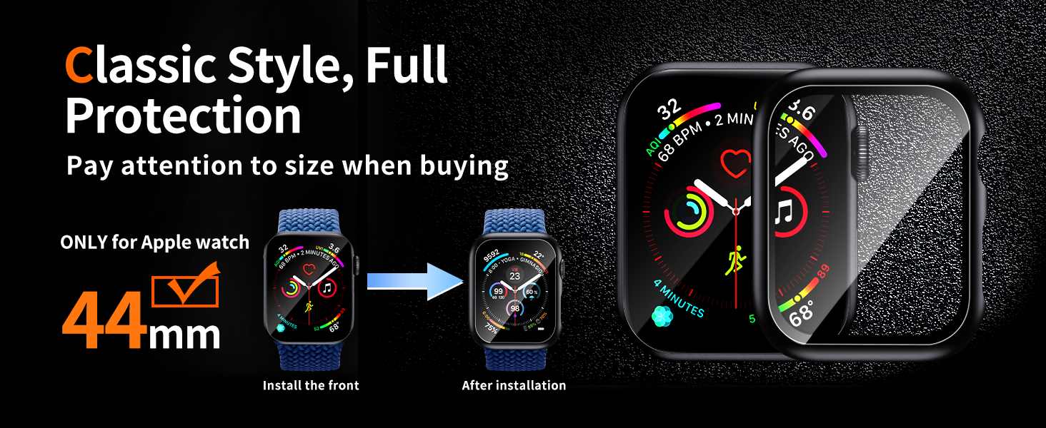 【الحماية الشاملة】يتميز هذا الجراب الصلب لساعة Apple بمصد صلب من البولي كربونات مع مجموعة شاشة زجاجية مقواة مدمجة 9H، مما يوفر لساعتك حماية شاملة من التآكل والتمزق اليومي، ويمنع الخدوش والصدمات والتأثيرات.