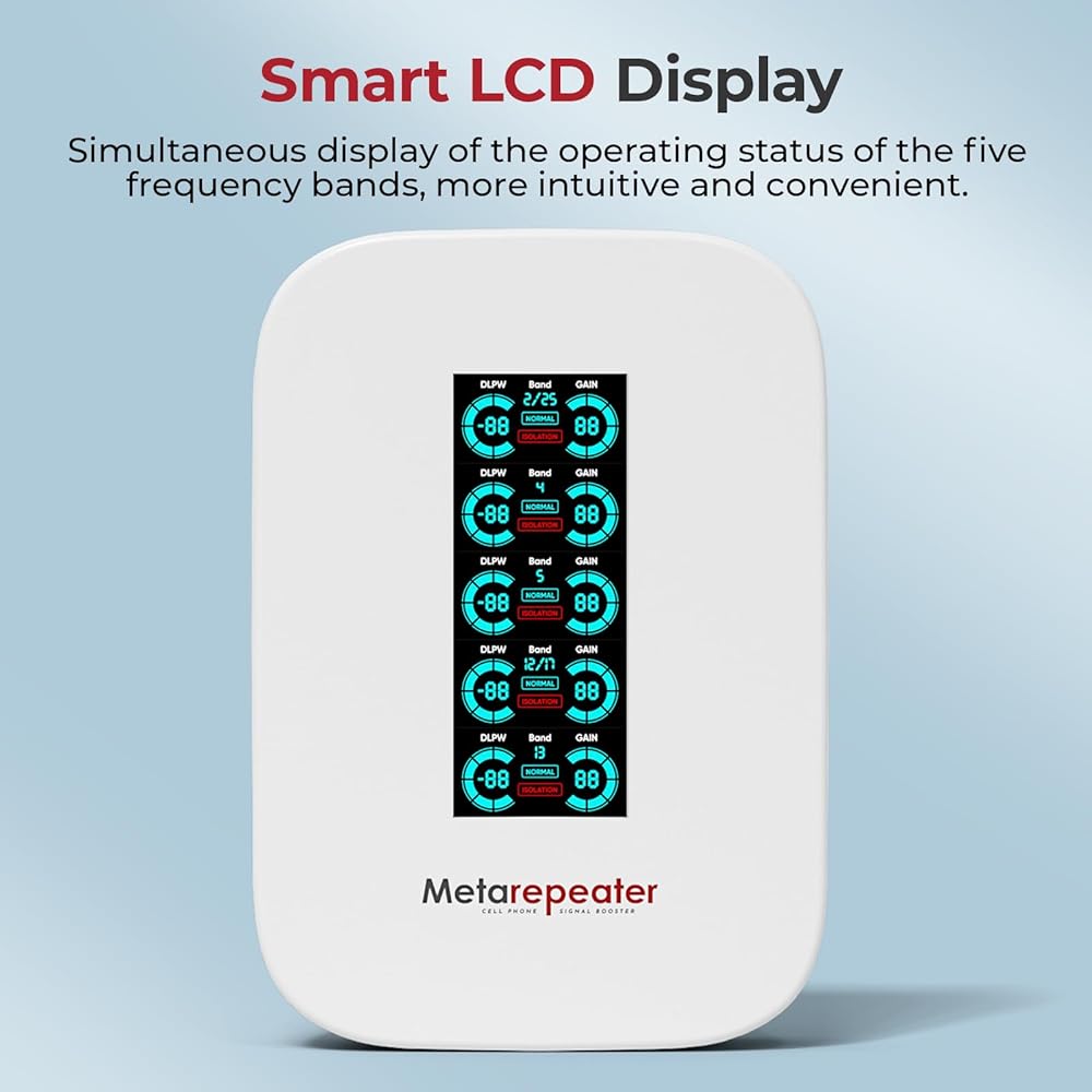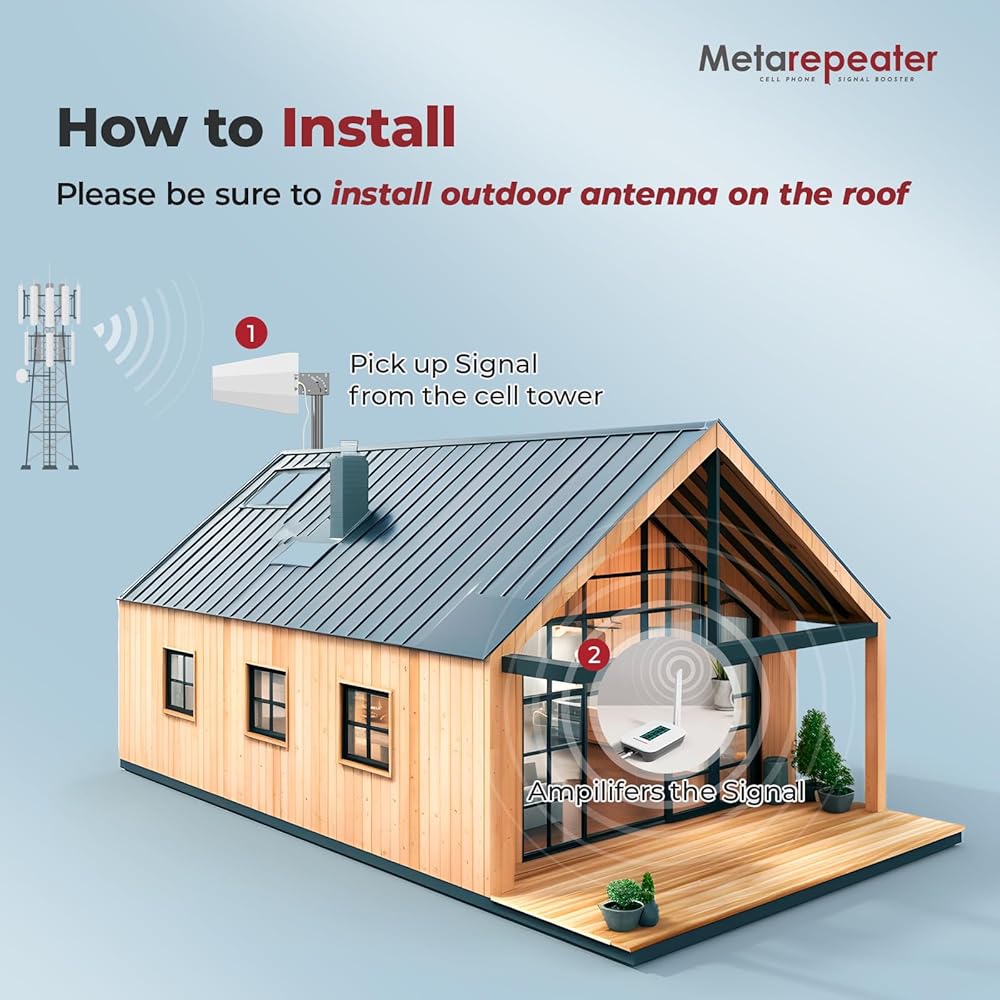 【يعمل مع جميع شركات النقل الأمريكية】معزز خلوي Metarepeater متوافق مع جميع شركات النقل الأمريكية - AT&T، Verizon، T-Mobile، Sprint، Straight Talk، U.S. Cellular والمزيد. يسمح معزز الهاتف للعديد من المستخدمين والأجهزة بالاستمتاع بإشارة أكبر في نفس الوقت.