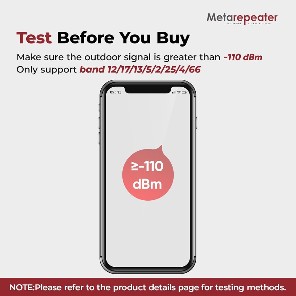 【ملاحظة: تعتمد التغطية والأداء على قوة الإشارة الخارجية. لضمان الأداء السليم، يرجى التأكد من أن قوة الإشارة عند نقطة تركيب الهوائي الخارجي لا تقل عن -110 ديسيبل مللي واط. إذا لم تكن متأكدًا مما إذا كان هذا المعزز مناسبًا لموقعك، فلا تتردد في الاتصال بنا قبل الشراء - يسعدنا مساعدتك في العثور على الحل الأفضل!