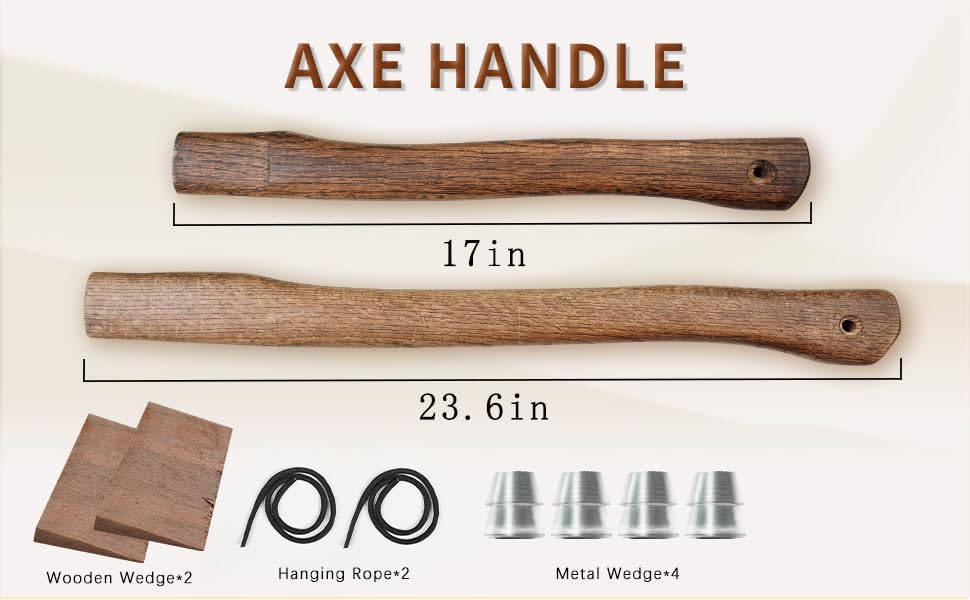 مقبض فأس بديل: تم تصميم استبدال مقبض الفأس مقاس 17 بوصة + 23.6 بوصة لاستبدال مقبض الفأس بملاءمة دقيقة وسهولة التركيب والتوافق مع الأدوات الموجودة