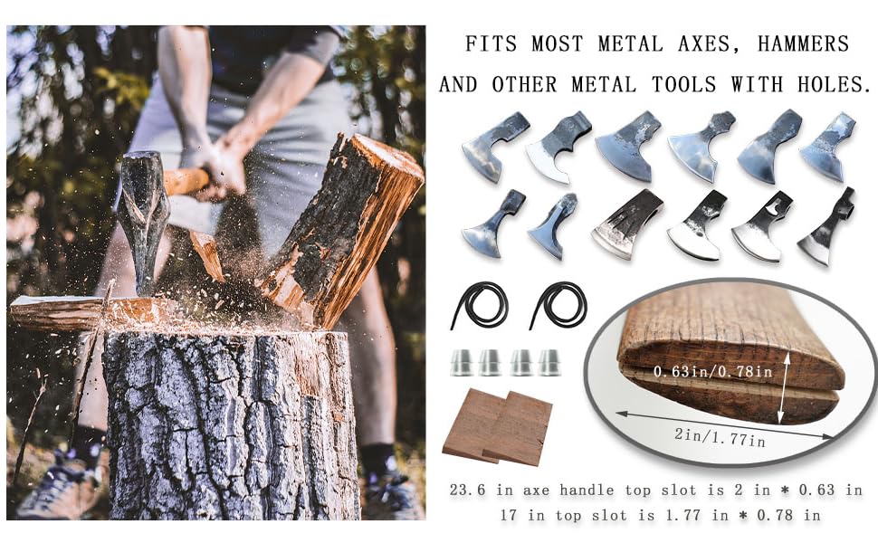 ملاحظة: الفتحة العلوية لمقبض الفأس مقاس 23.6 بوصة هي 2 بوصة * 0.63 بوصة، والفتحة العلوية 17 بوصة هي 1.77 بوصة * 0.78 بوصة، إذا لم يكن رأس الفأس الخاص بك من العيار الصحيح، فيرجى الشراء بحذر. إذا استلمت الملحقات المفقودة للسلع، فيرجى الاتصال بنا، وسنطلب منك حل المشكلة على الفور