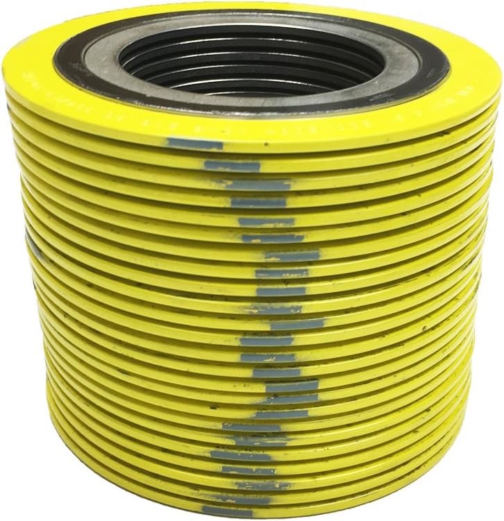 حشية جرح حلزونية من الفولاذ المقاوم للصدأ 9000IR8304GR1500X24 304 مع حلقة داخلية 304SS وحشو جرافيت مرن، فئة الضغط 1500#، لأنابيب 8 بوصات، أصفر مع شريط رمادي (عبوة من 24 قطعة)