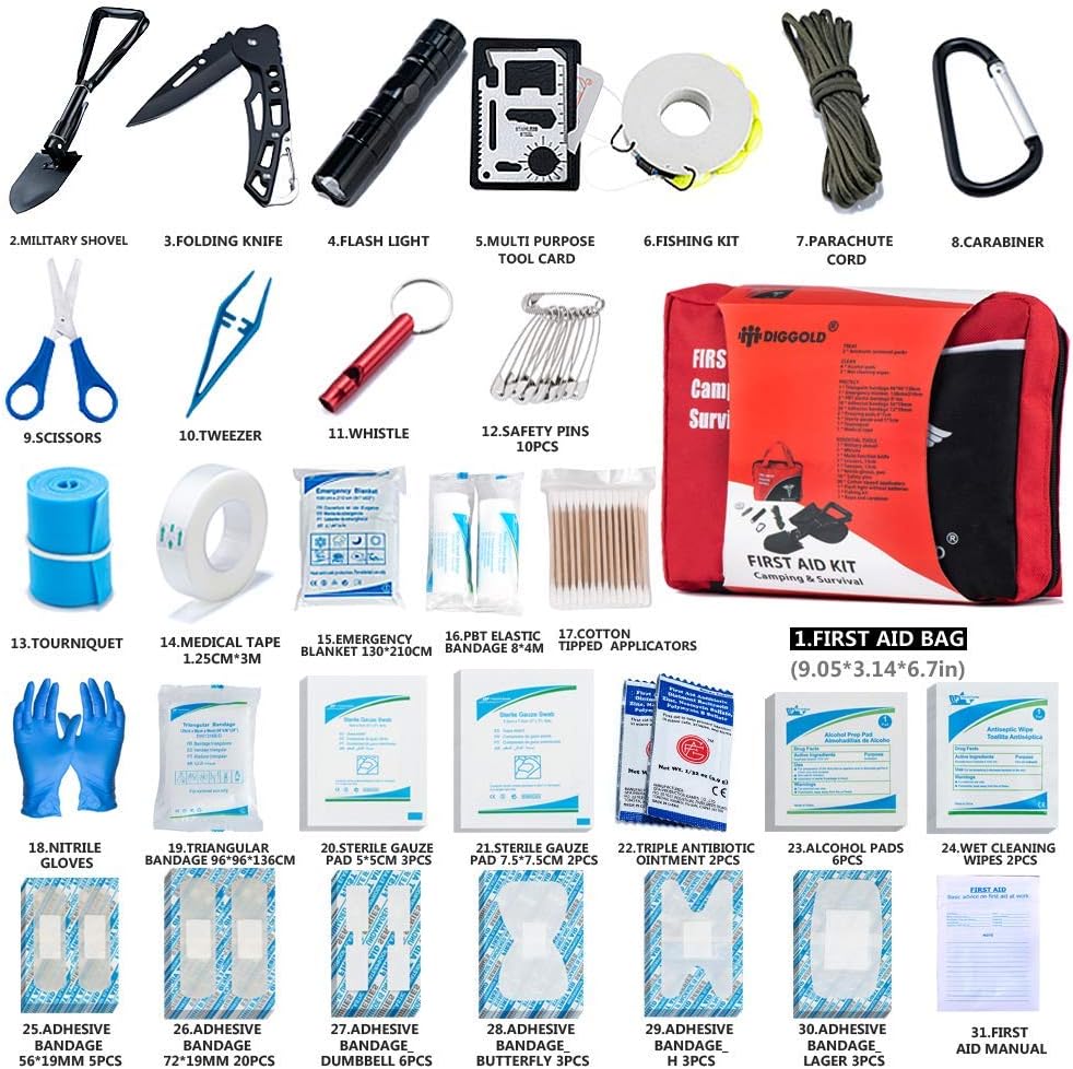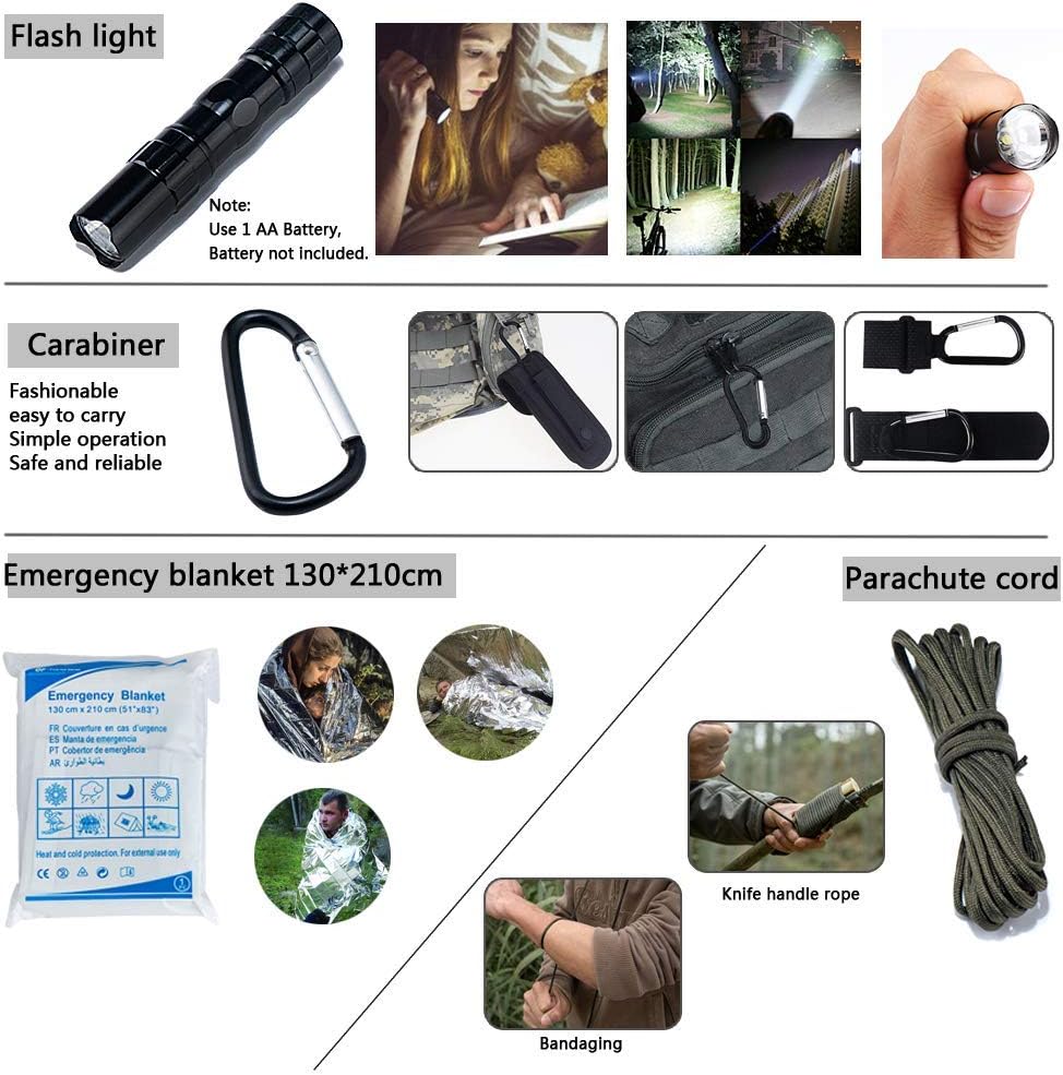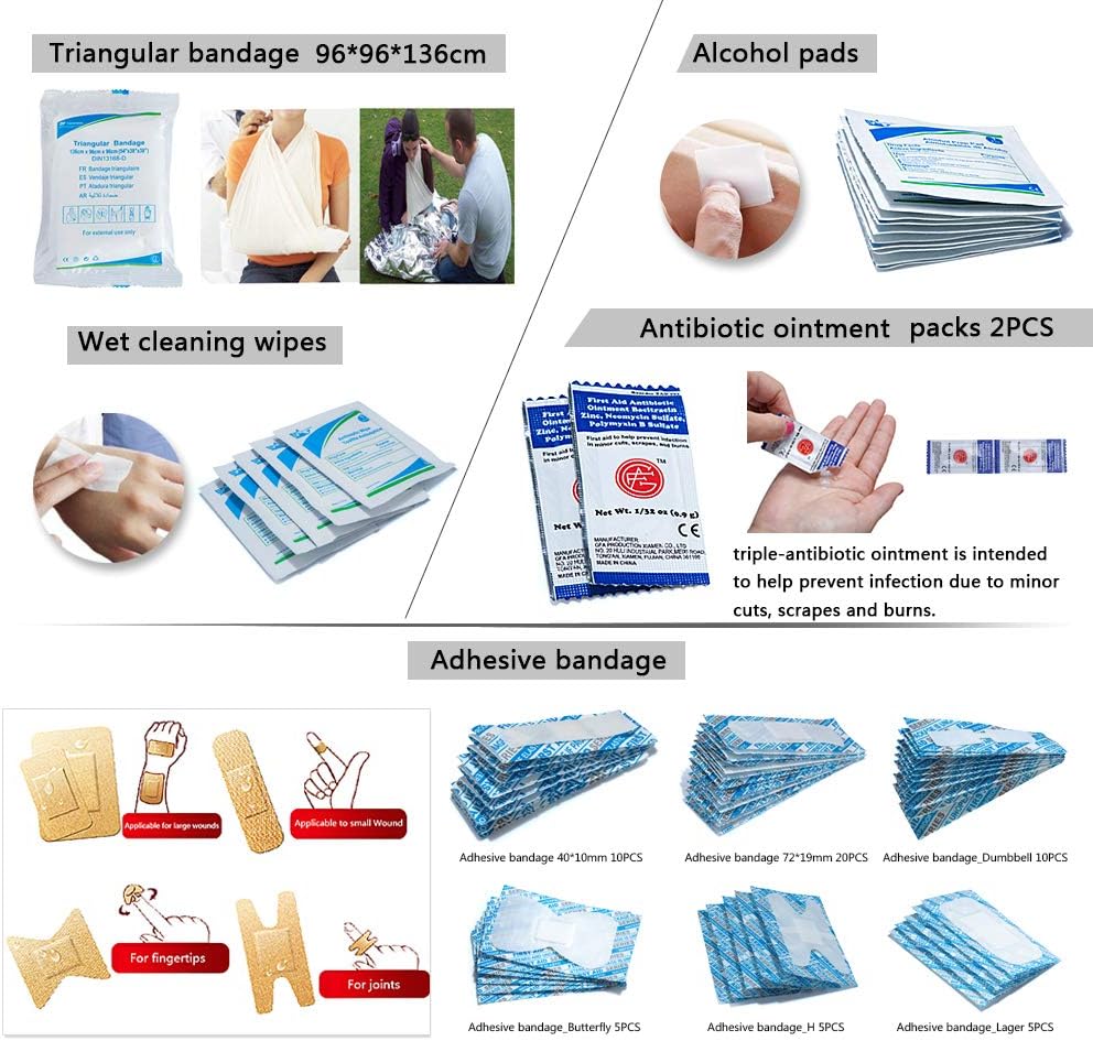 جاهزة لطريقك: لا توجد تحذيرات بشأن الزلازل والأعاصير وغيرها من الكوارث، تساعدك المجموعة على أن تكون مستعدًا قدر الإمكان. المزيج المثالي من الإمدادات الطبية وأدوات النجاة، حقيبة الإسعافات الأولية هذه هي الخيار الأفضل لحالات الطوارئ وكذلك التخييم، والتنزه سيرًا على الأقدام، وحقائب الظهر، والرحلات العائلية الأساسية والمزيد.