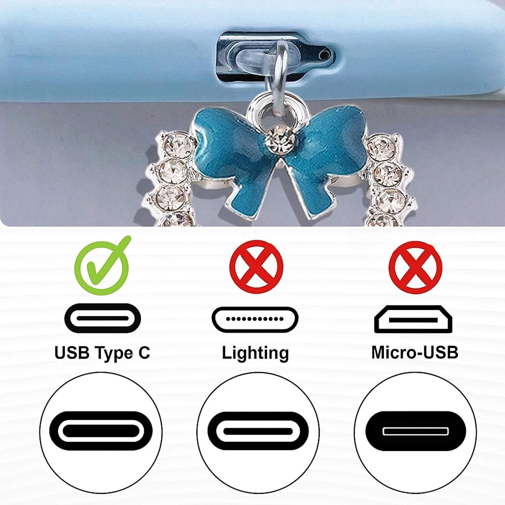 Crafted from premium materials, these charms are made to withstand everyday use. The dust plugs are made from flexible plastic, ensuring they fit securely into your device's USB-C or Type-C port. The heart and bow charms are made from durable resin and acrylic, offering a smooth and glossy finish that won't fade over time.