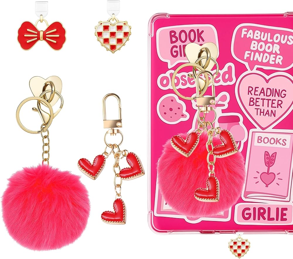 Red Heart Kindle Charm Set: Where Reading Meets Romantic Flair