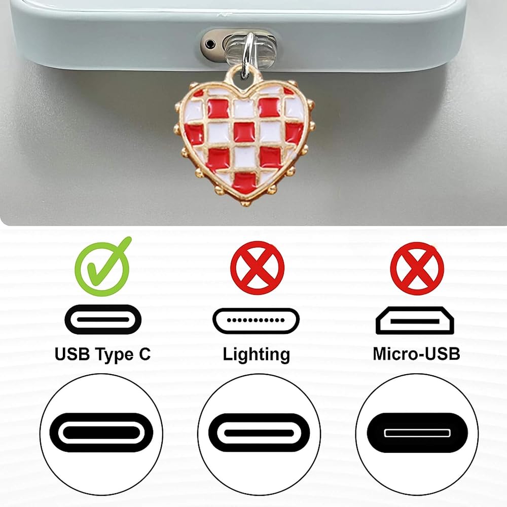 【Multi-functional Dust Plug Accessories】Featuring a red bow and checkered heart design, They protect your device's ports from dust while adding a personalized and decorative touch to your e-reader.