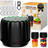 2026 طقم سدادة مكنسة كهربائية مطورة مع أغطية ميسون واسعة ومنتظمة - مضخة تفريغ أوتوماتيكية 80 كيلو باسكال، بطارية 2500 مللي أمبير في الساعة، آلة إغلاق تعليب بلمسة واحدة لتخزين الطعام باللون الأسود