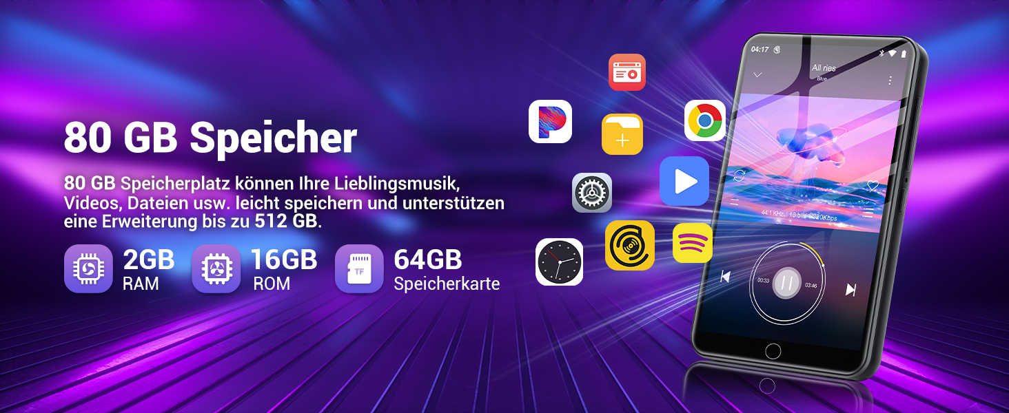 💝Android 13.0 System The Diofox MP3 player runs on the all-new Android 13.0 system, delivering a smart and fluid experience. System responsiveness is boosted by 40%, combined with 3GB RAM + 32GB storage hardware configuration to ensure smooth multitasking without lag. Fully compatible with the Google Play Store, it supports mainstream media apps like Spotify and Audible, offering an operating experience identical to smartphones.