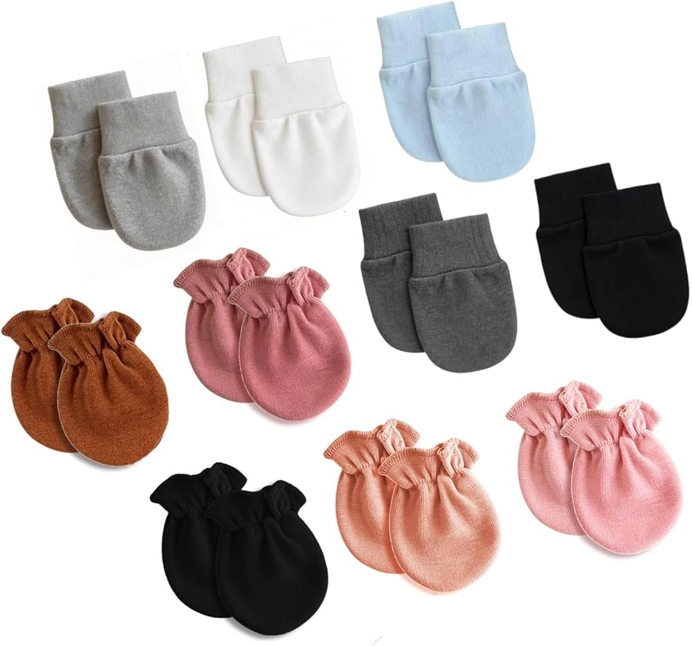 10 أزواج من قفازات الأطفال حديثي الولادة بدون خدش، قفازات أطفال من القطن الناعم، قفازات للأطفال حديثي الولادة من البنات والأولاد من عمر 0 ​​إلى 6 أشهر، أساسيات حديثي الولادة يجب اقتناؤها