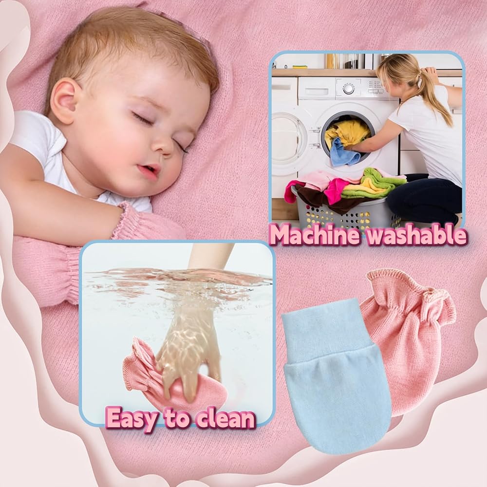 • 【نسيج متين وسهل العناية】قفازات الأطفال حديثي الولادة هذه لا تسبب أي خدوش، وهي متينة ويمكن غسلها يدويًا أو في الغسالة، ولكن يوصى بالغسيل اليدوي. إذا كان الغسيل في الغسالة ضروريًا، فمن الأفضل استخدام كيس الغسيل لحماية مرونة المعصم. القماش عالي الجودة ثابت الألوان ومقاوم للتحبب، ولن يتغير شكله أو يفقد نعومته حتى بعد الغسيل المتكرر. تتميز قفازات الأطفال هذه بأنها صديقة للبشرة ومريحة، مما يجعلها خيارًا مثاليًا للأطفال من سن 0 إلى 6 أشهر.