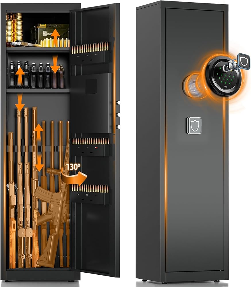 8-10 بندقية بندقية آمنة لأمن المنزل، بندقية آمنة للبنادق والمسدسات - لوحة المفاتيح الرقمية الوصول السريع | من السهل تجميع الأسلحة بأمان مع أرفف قابلة للتعديل وخزائن بندقية للمنزل مع لوحة مفاتيح رقمية