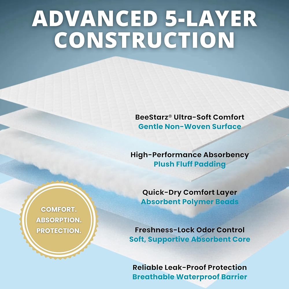 تقنية الامتصاص الدقيقة - تحبس السوائل بسرعة للحفاظ على الأسطح جافة وصحية وخالية من الروائح.