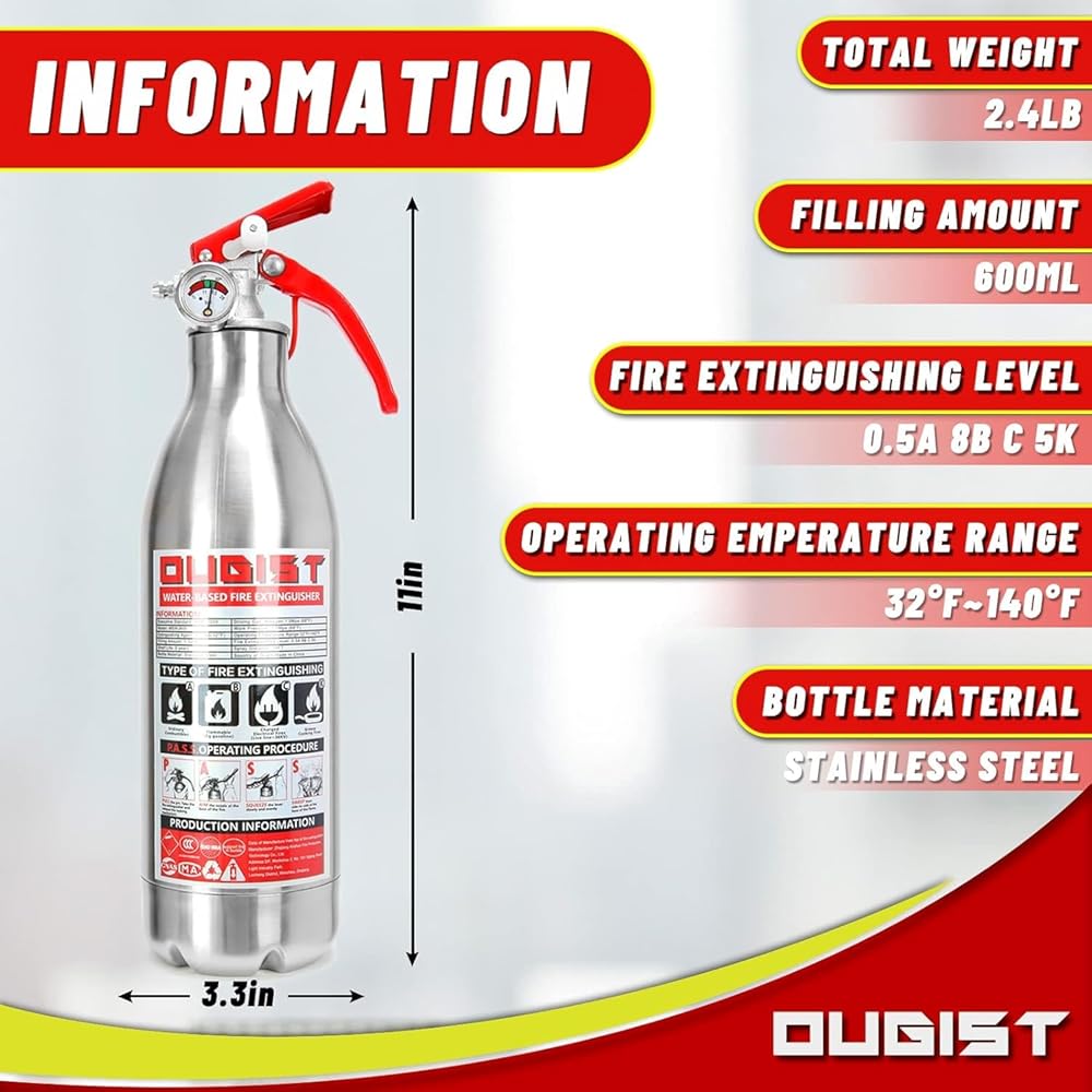 صغير الحجم ومحمول: وزن 1.1 رطل وطول 9.84 بوصة، يمكن وضعه بسهولة في حقائب اليد وصناديق مسند ذراع السيارة والخزائن المنزلية والمزيد، للاستخدام مثل طفاية حريق السيارة وطفاية حريق السيارة