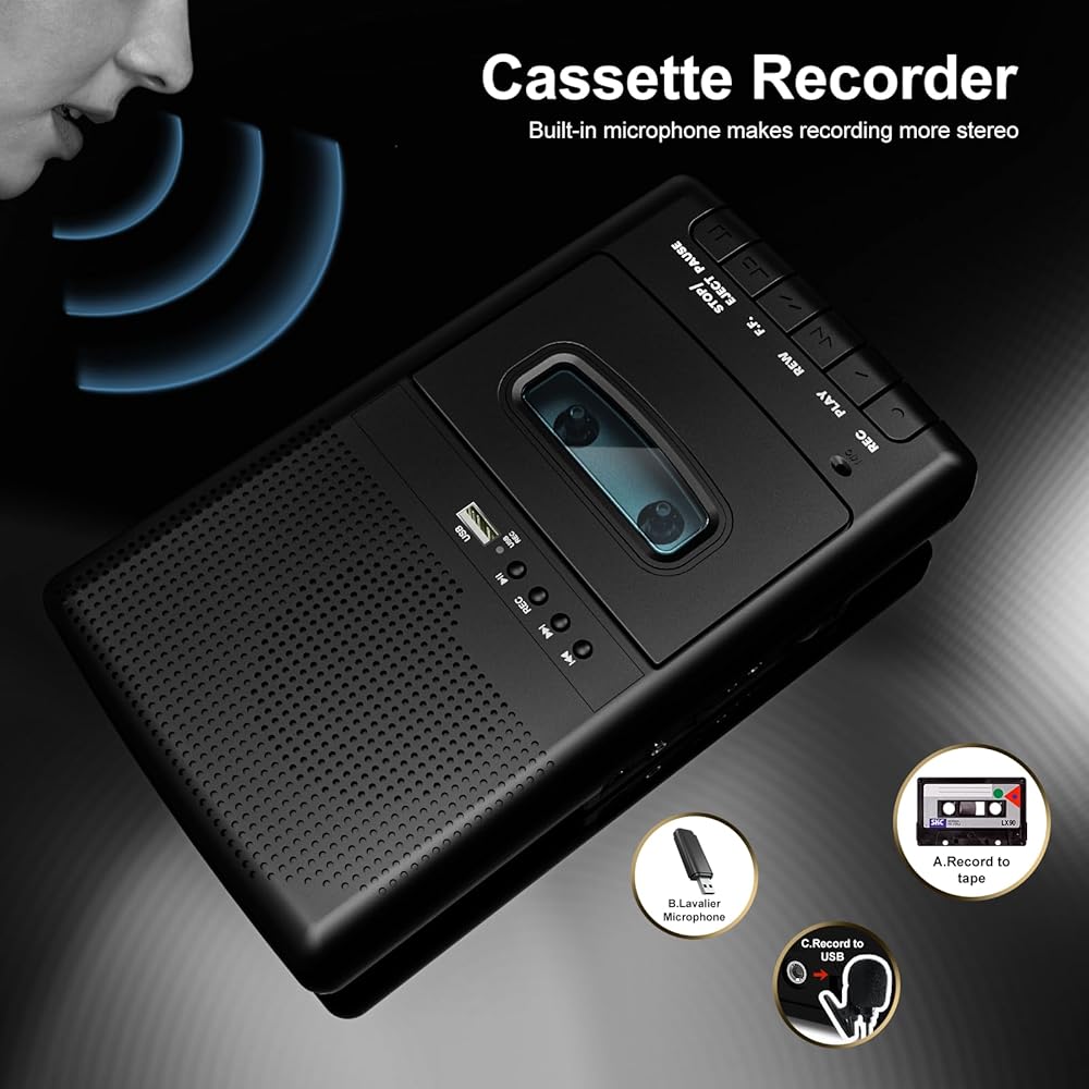 【مشغل كاسيت محمول خفيف الوزن】مصمم بمقبض قابل للسحب، يتناسب مشغل الكاسيت المحمول هذا بسهولة مع حقيبة ظهرك. مثالي لأنماط الحياة المتنقلة، فهو يوفر وظائف الموسيقى والتسجيل في أي مكان تذهب إليه.