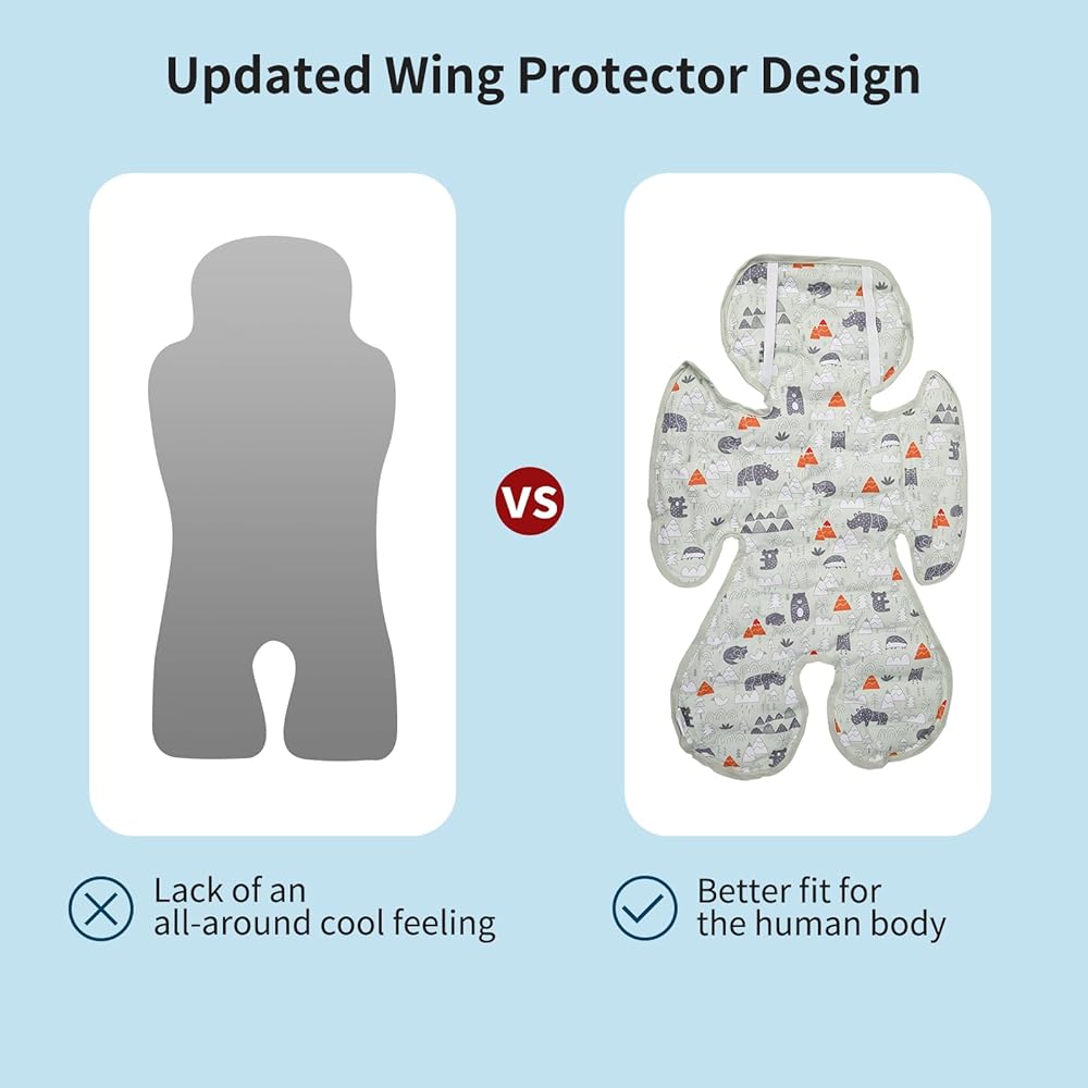 تصميم ذو وجهين وواقي للجناح: وسادة تبريد عربة الأطفال هذه قابلة للعكس للاستخدام في الصيف، مع أنماط جميلة على الأمام والخلف، وتم ترقيتها إلى الموديلات القديمة بدون أذرع، مما يوفر شعورًا رائعًا في جميع أنحاء الطفل.