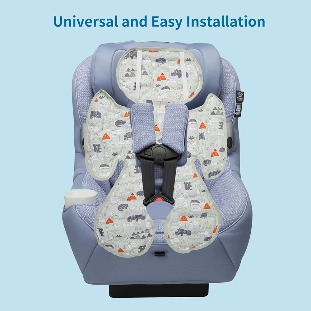 تركيب عالمي وسهل: التصميم الجديد يسهل مرور حزام الأمان من خلاله، ويناسب عربات الأطفال ذات 3 نقاط و5 نقاط ومقاعد سيارات الرضع وكراسي الأطفال المتوفرة في السوق، بالإضافة إلى شريطين مطاطيين عاليين وخطافات تثبيت تضمن عدم انزلاق الوسادة، وسهلة التركيب.